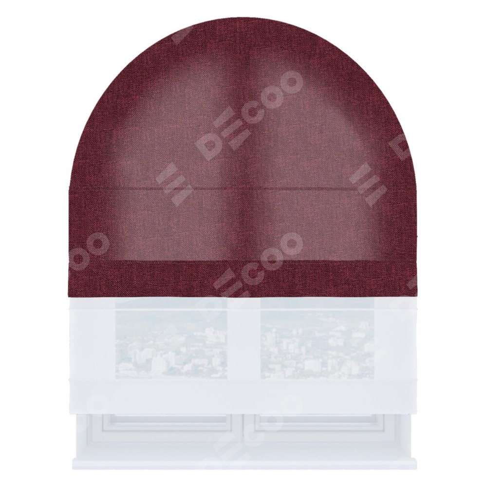 Римская штора день-ночь производителя «Cortin», используется для арочного проёма, пошита из двух полотен, с лицевой стороны лён кашемир бордовый артикул 21621, вторая ткань тюль (по стандарту комплектуется тюль белого цвета артикул V-01). Штора шьётся по индивидуальным размерам, для данного типа римской шторы возможная ширина от 60 до 300 см. Удобное управление каждой шторой отдельно.