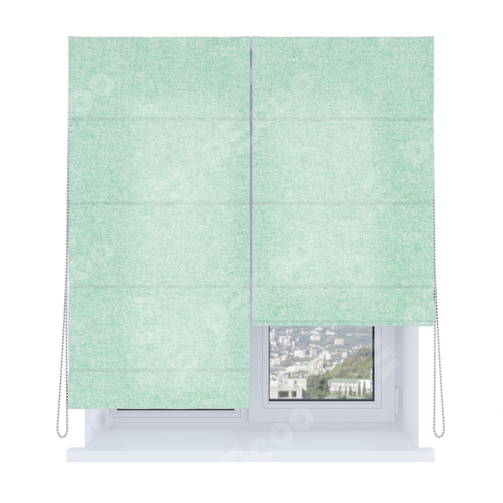 Римская штора производителя «Cortin», используется для проёма, пошита из ткани лён кашемир мятный, артикул ткани 21617. Имеет универсальный механизм и подходит для монтажа: на потолок, на стену и в нишу. Удобное управление каждой шторой отдельно.