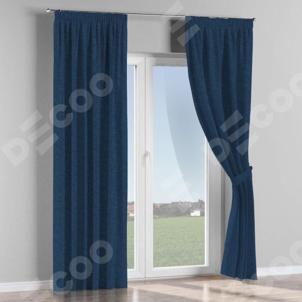 Комплект прямых штор, от производителя «Cortin», пошиты из ткани лён кашемир тёмно-синий, артикул ткани 17215. С изнаночной стороны в верхней части штор пристрачивается шторная лента с декоративными складками «Карандаш». Для создания элегантных складок прямые шторы шьются по стандарту с коэффициентом 1:2 (на 100 см. ширины проёма 200 см. ширины ткани).