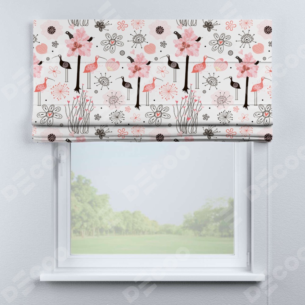 Римская штора «Кортин» для проема «Любопытные птички»