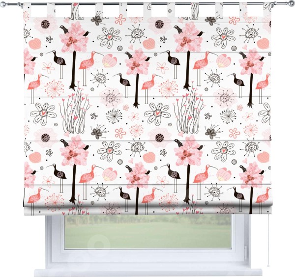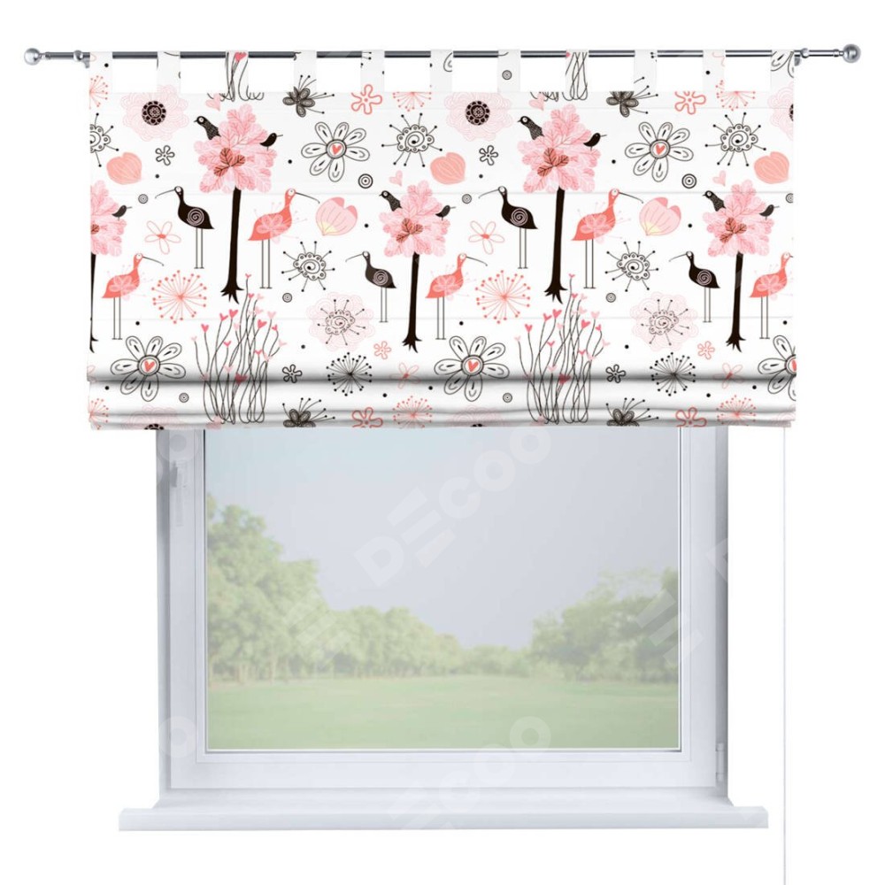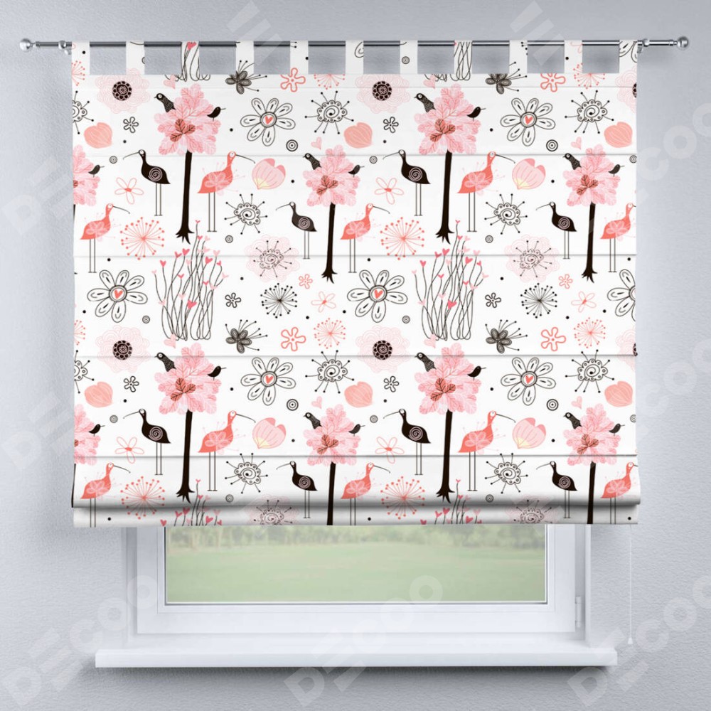 Римская штора производителя «Cortin», используется для проёма, пошита из ткани блэкаут с нанесением сублимационной печати «Любопытные птички». Данная модель пошита на петлях, комплектуется на выбор круглым карнизом и подходит для монтажа на стену. Римская штора на петлях имеет простую систему регулировки высоты, отличительным преимуществом данной модели является простой способ монтажа. Достаточно повесить ее на трубу и штора готова!