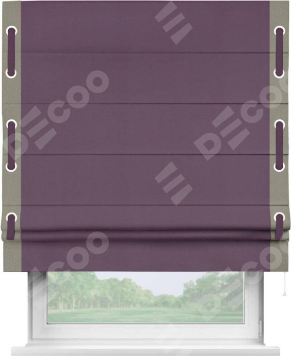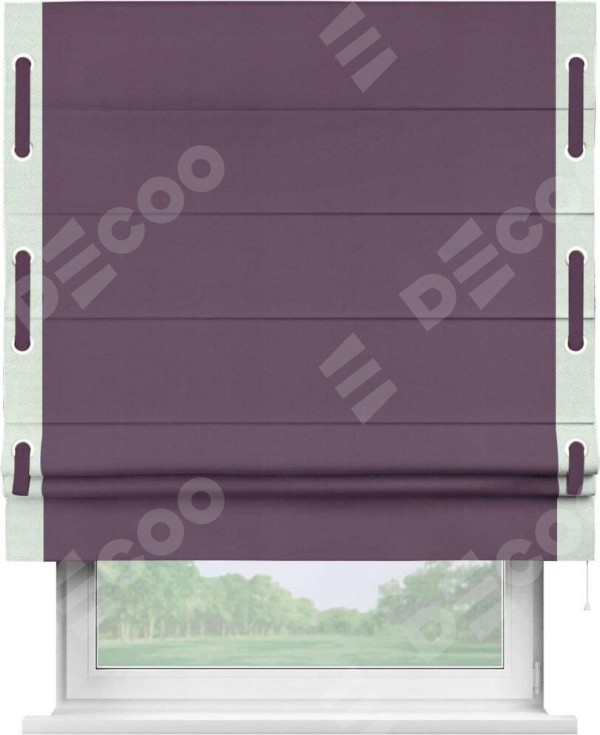 Римская штора производителя «Cortin», используется для проёма, пошита из ткани блэкаут однотонный фуксия, артикул ткани 88303. Отделка шторы кантом «Стрим Дуо» на кантах расположены люверсы с пояском, ткань для канта используется из блэкаута однотонного разной расцветки на выбор. Ткань для пояска обычно используется из основной ткани шторы, а так же можно сделать из любой расцветки по желанию. Имеет универсальный механизм и подходит для монтажа: на потолок, на стену и в нишу.