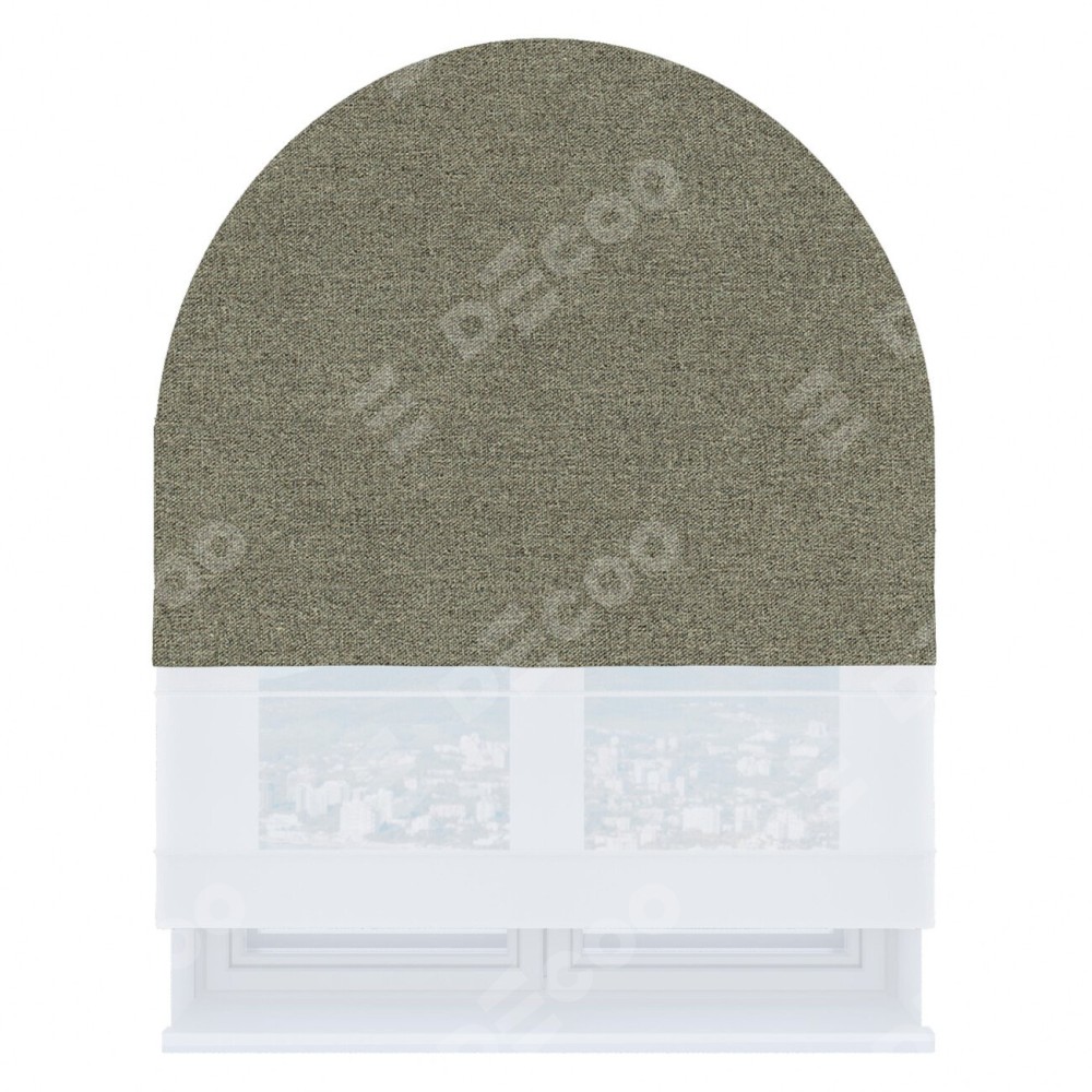 Римская штора день-ночь производителя «Cortin», используется для арочного проёма, пошита из двух полотен, с лицевой стороны лён блэкаут шампань артикул 69449, вторая ткань тюль (по стандарту комплектуется тюль белого цвета артикул V-01). Штора шьётся по индивидуальным размерам, для данного типа римской шторы возможная ширина от 60 до 300 см. Удобное управление каждой шторой отдельно.