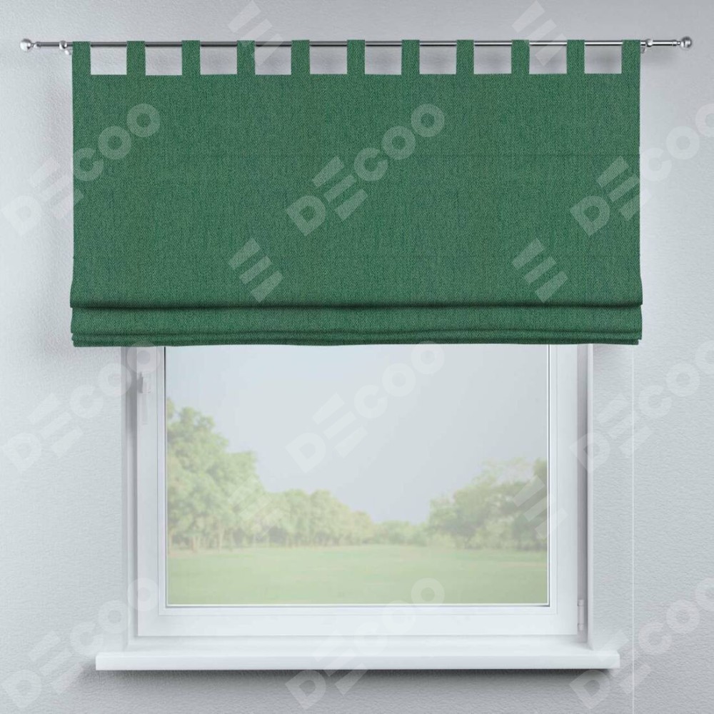 Римская штора производителя «Cortin», используется для проёма, пошита из ткани твид блэкаут зелёный, артикул ткани 21589. Данная модель пошита на петлях, комплектуется на выбор круглым карнизом и подходит для монтажа на стену. Римская штора на петлях имеет простую систему регулировки высоты, отличительным преимуществом данной модели является простой способ монтажа. Достаточно повесить ее на трубу и штора готова!