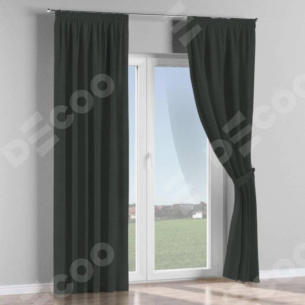 Комплект прямых штор, от производителя «Cortin», пошиты из ткани лён блэкаут графит, артикул ткани 69448. С изнаночной стороны в верхней части штор пристрачивается шторная лента с декоративными складками «Карандаш». Для создания элегантных складок прямые шторы шьются по стандарту с коэффициентом 1:2 (на 100 см. ширины проёма 200 см. ширины ткани).