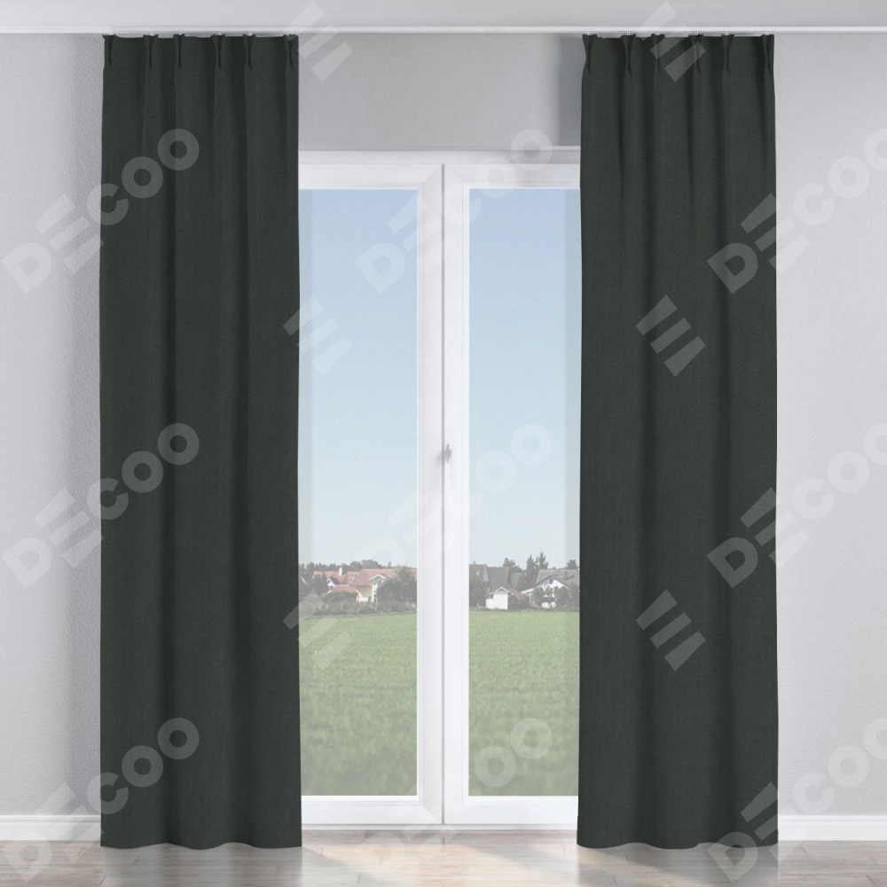 Комплект прямых штор, от производителя «Cortin», пошиты из ткани лён блэкаут графит, артикул ткани 69448. С изнаночной стороны в верхней части штор пристрачивается шторная лента с декоративными складками «Кустик». Для создания элегантных складок прямые шторы шьются по стандарту с коэффициентом 1:2 (на 100 см. ширины проёма 200 см. ширины ткани).