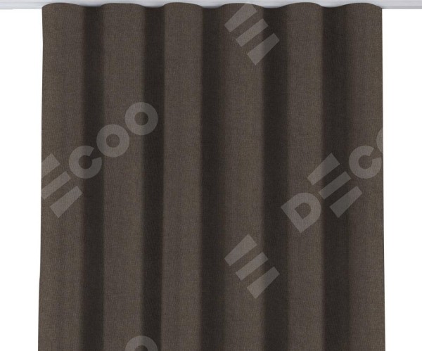 Комплект прямых штор, от производителя «Cortin», пошиты из ткани лён блэкаут коричневый, артикул ткани 69383. С изнаночной стороны в верхней части штор пристрачивается шторная лента с декоративными складками «Волна». Для создания элегантных складок прямые шторы шьются по стандарту с коэффициентом 1:2 (на 100 см. ширины проёма 200 см. ширины ткани).
