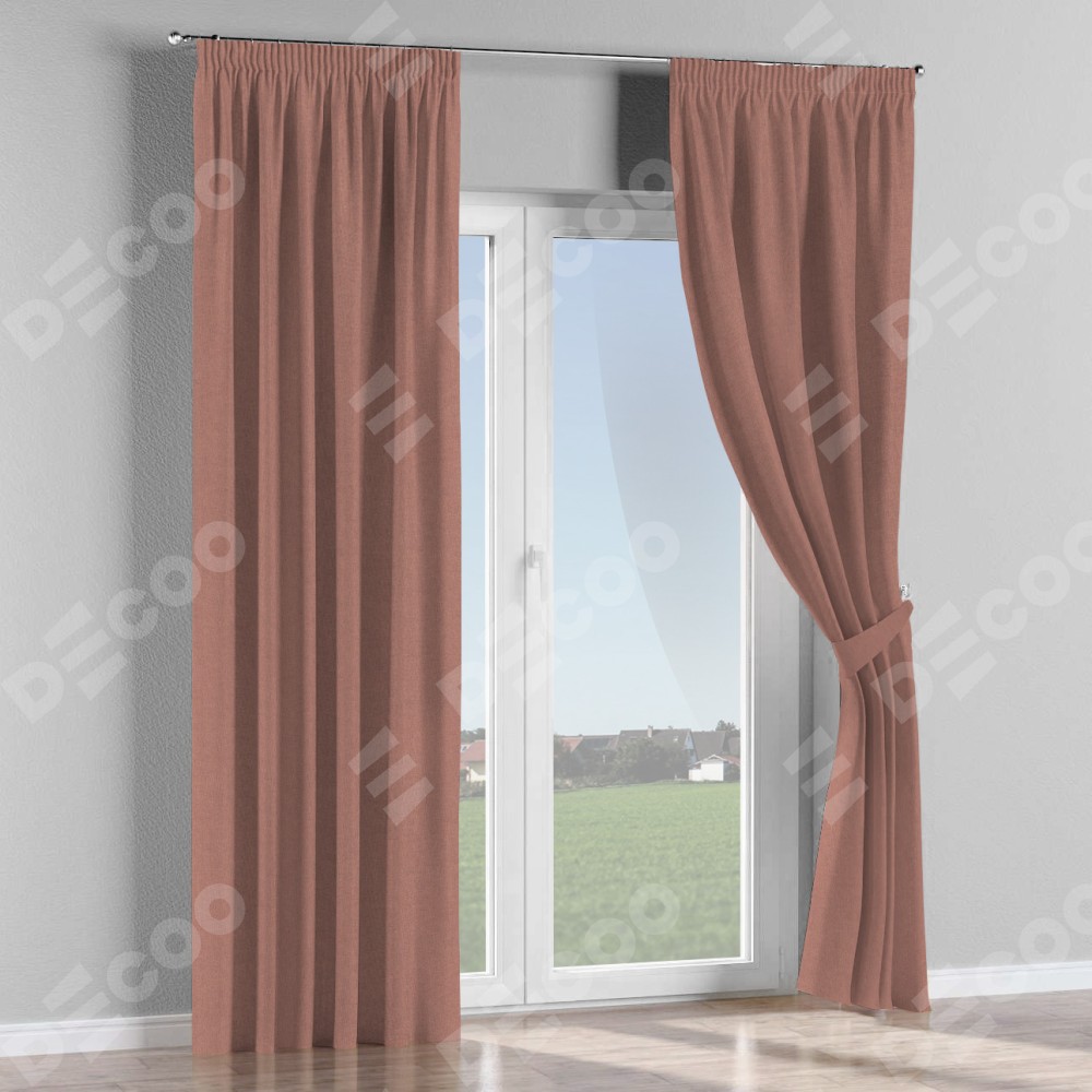 Комплект прямых штор, от производителя «Cortin», пошиты из ткани лён блэкаут розовый, артикул ткани 69575. С изнаночной стороны в верхней части штор пристрачивается шторная лента с декоративными складками «Карандаш». Для создания элегантных складок прямые шторы шьются по стандарту с коэффициентом 1:2 (на 100 см. ширины проёма 200 см. ширины ткани).