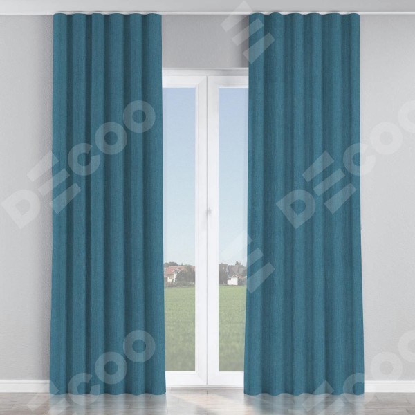 Комплект прямых штор, от производителя «Cortin», пошиты из ткани лён блэкаут синий, артикул ткани 69528. С изнаночной стороны в верхней части штор пристрачивается шторная лента с декоративными складками «Волна». Для создания элегантных складок прямые шторы шьются по стандарту с коэффициентом 1:2 (на 100 см. ширины проёма 200 см. ширины ткани).