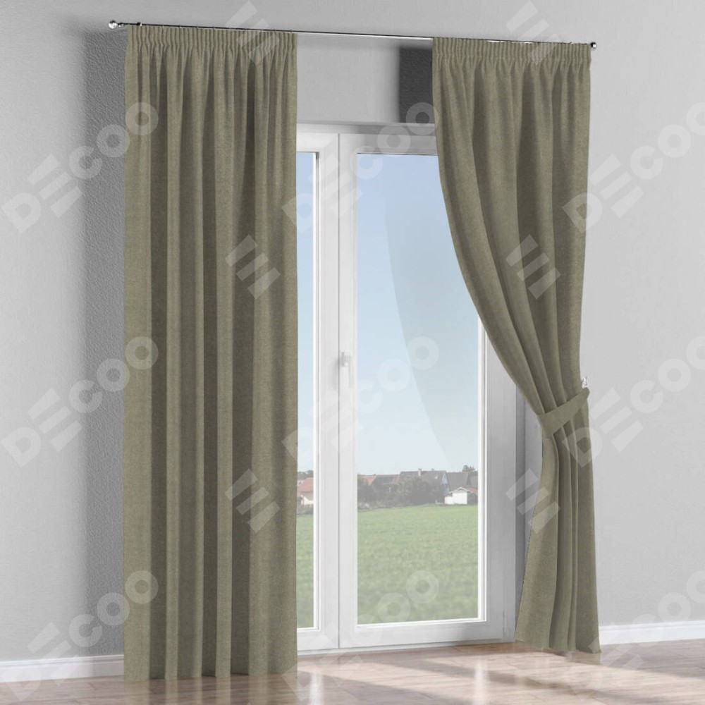 Комплект прямых штор, от производителя «Cortin», пошиты из ткани лён блэкаут шампань, артикул ткани 69449. С изнаночной стороны в верхней части штор пристрачивается шторная лента с декоративными складками «Карандаш». Для создания элегантных складок прямые шторы шьются по стандарту с коэффициентом 1:2 (на 100 см. ширины проёма 200 см. ширины ткани).