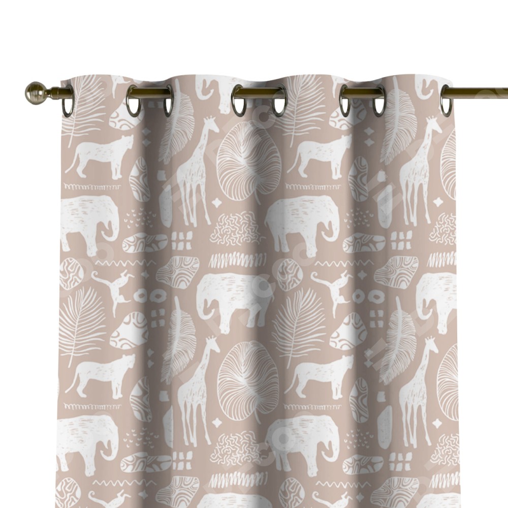 Комплект прямых штор, от производителя «Cortin», пошиты из ткани блэкаут с нанесением сублимационной печати «Африканские животные». Данная модель пошита на люверсах, комплектуется на выбор круглым карнизом и подходит для монтажа на стену или потолок. Прямые шторы на люверсах шьются по стандарту с коэффициентом 1/2 (на 100 см. ширины проёма 200 см. ширины ткани), отличительным преимуществом данной модели является простой способ монтажа. Достаточно повесить ее на трубу и штора готова!