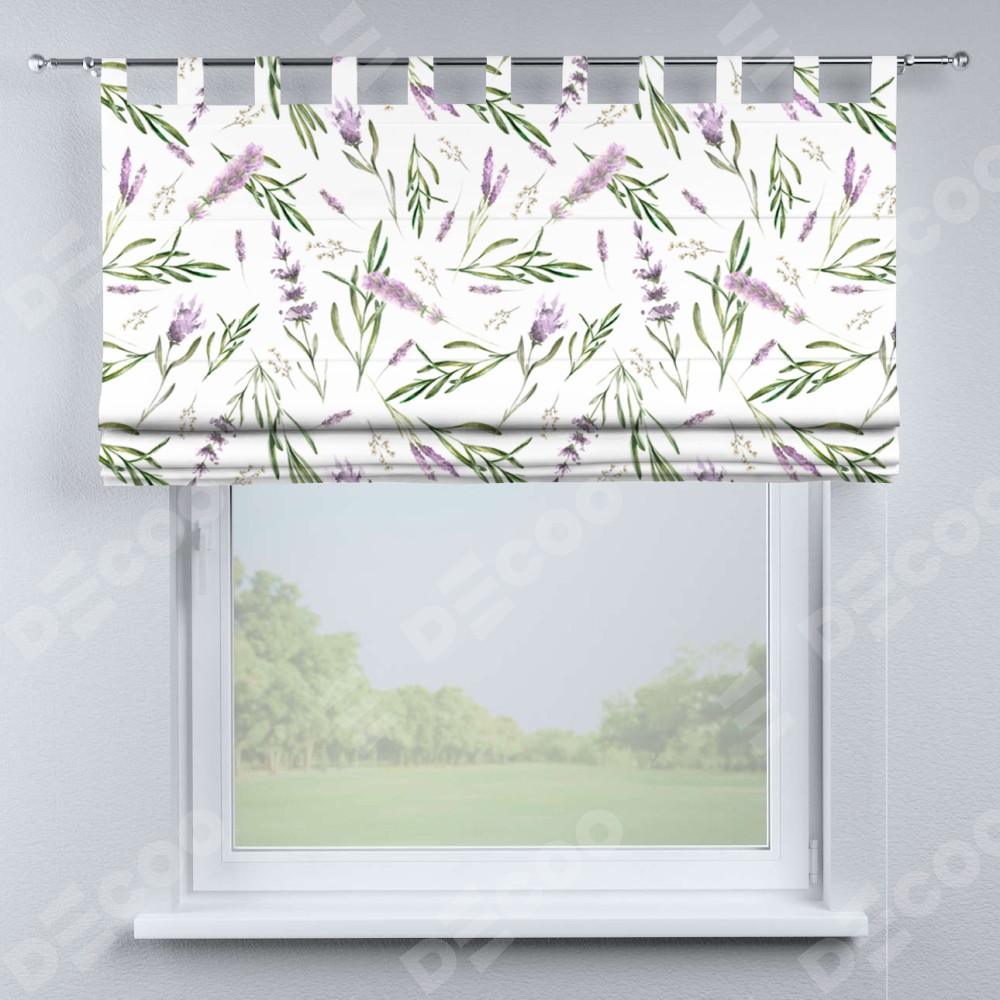 Римская штора производителя «Cortin», используется для проёма, пошита из ткани блэкаут с нанесением сублимационной печати «Лавандовое поле». Данная модель пошита на петлях, комплектуется на выбор круглым карнизом и подходит для монтажа на стену. Римская штора на петлях имеет простую систему регулировки высоты, отличительным преимуществом данной модели является простой способ монтажа. Достаточно повесить ее на трубу и штора готова!