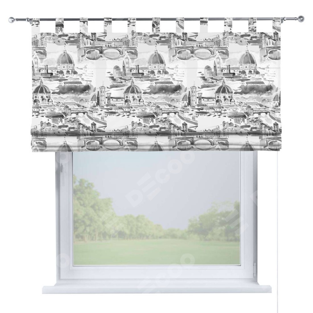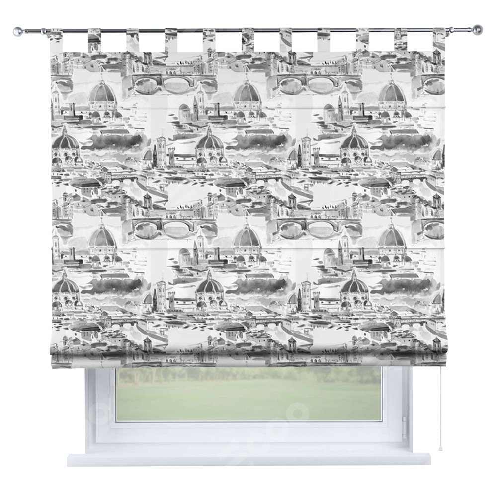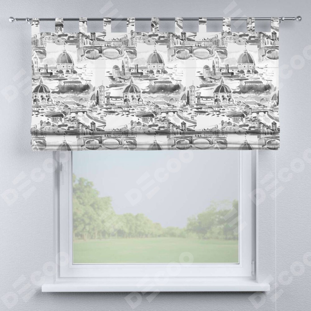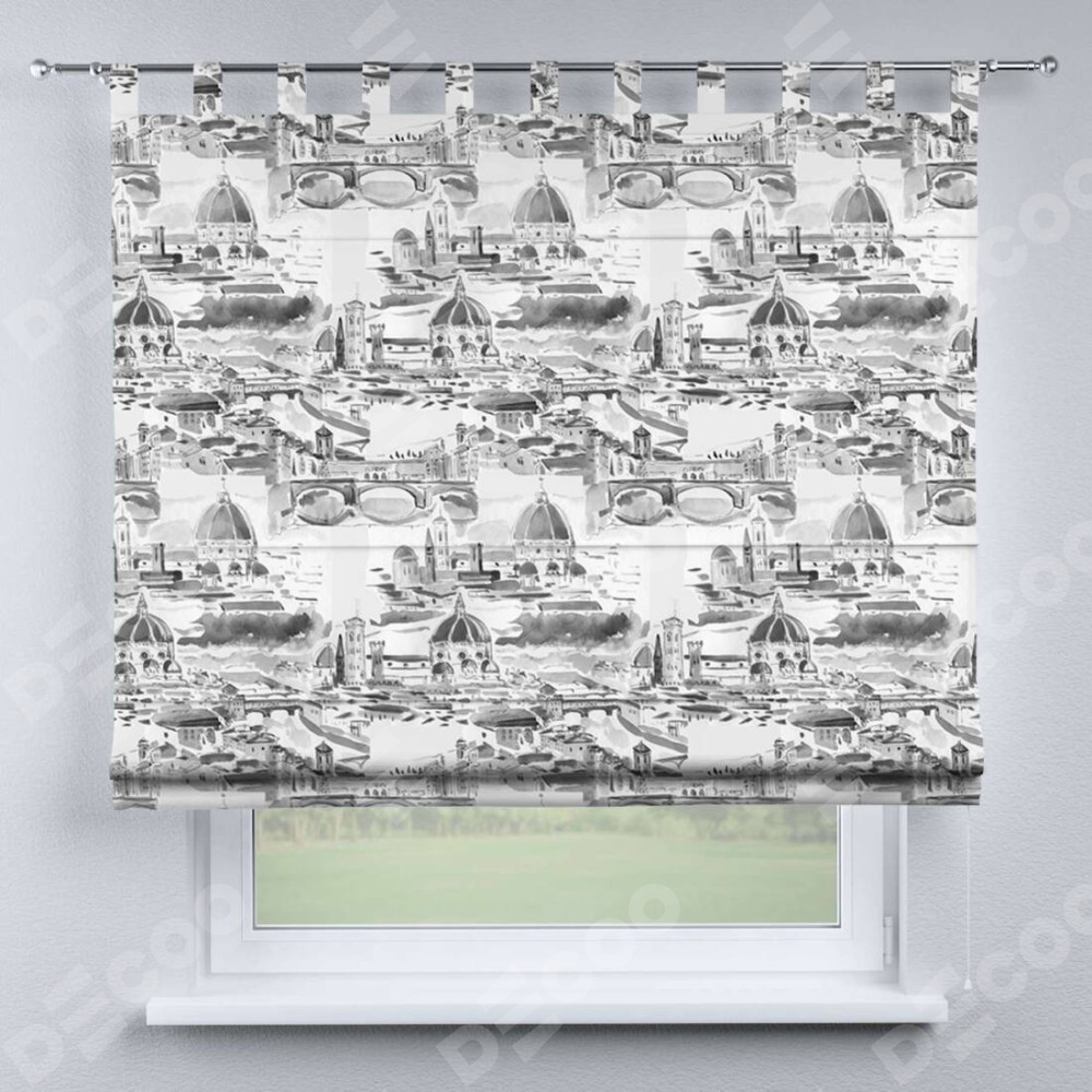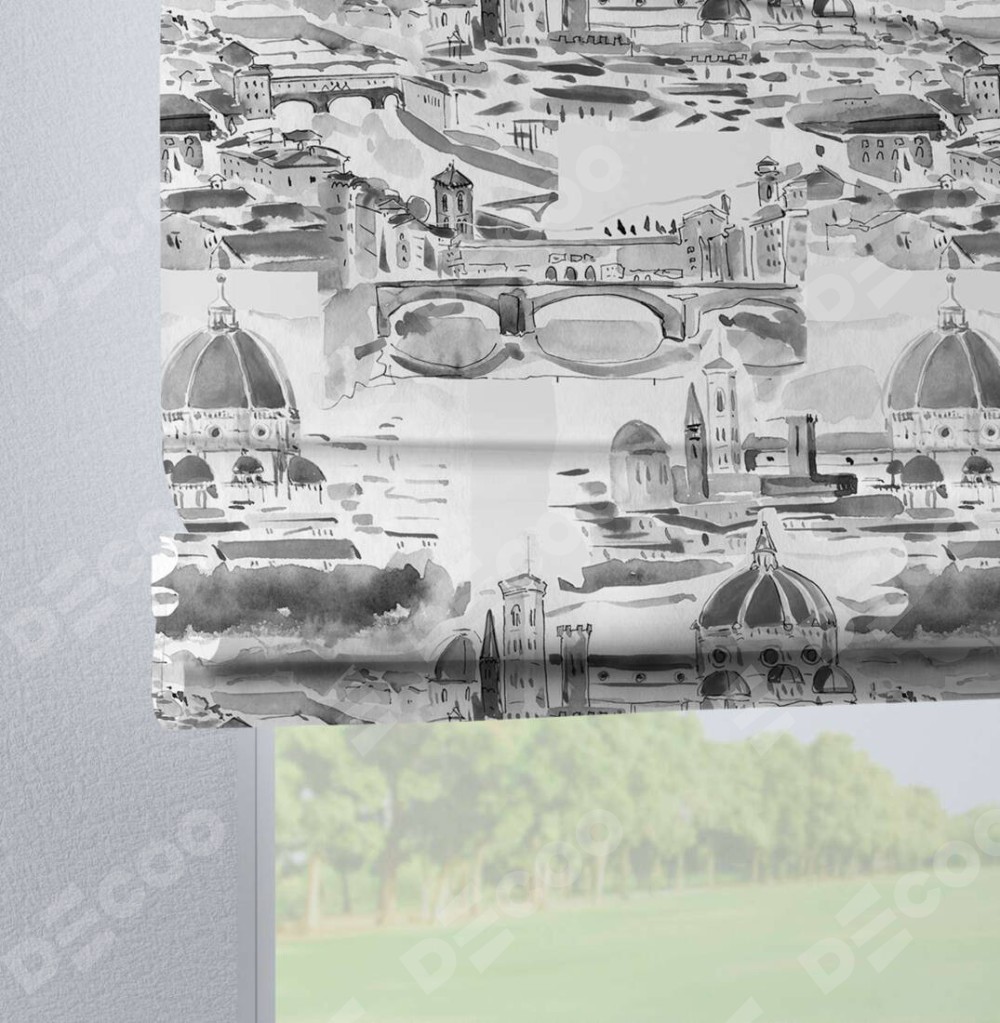 Римская штора производителя «Cortin», используется для проёма, пошита из ткани блэкаут с нанесением сублимационной печати «Старый город». Данная модель пошита на петлях, комплектуется на выбор круглым карнизом и подходит для монтажа на стену. Римская штора на петлях имеет простую систему регулировки высоты, отличительным преимуществом данной модели является простой способ монтажа. Достаточно повесить ее на трубу и штора готова!
