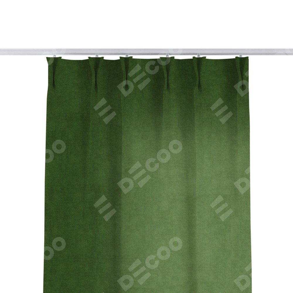 Комплект прямых штор, от производителя «Cortin», пошиты из ткани вельвет тёмно-салатовый, артикул ткани 33805. С изнаночной стороны в верхней части штор пристрачивается шторная лента с декоративными складками «Кустик». Для создания элегантных складок прямые шторы шьются по стандарту с коэффициентом 1:2 (на 100 см. ширины проёма 200 см. ширины ткани).
