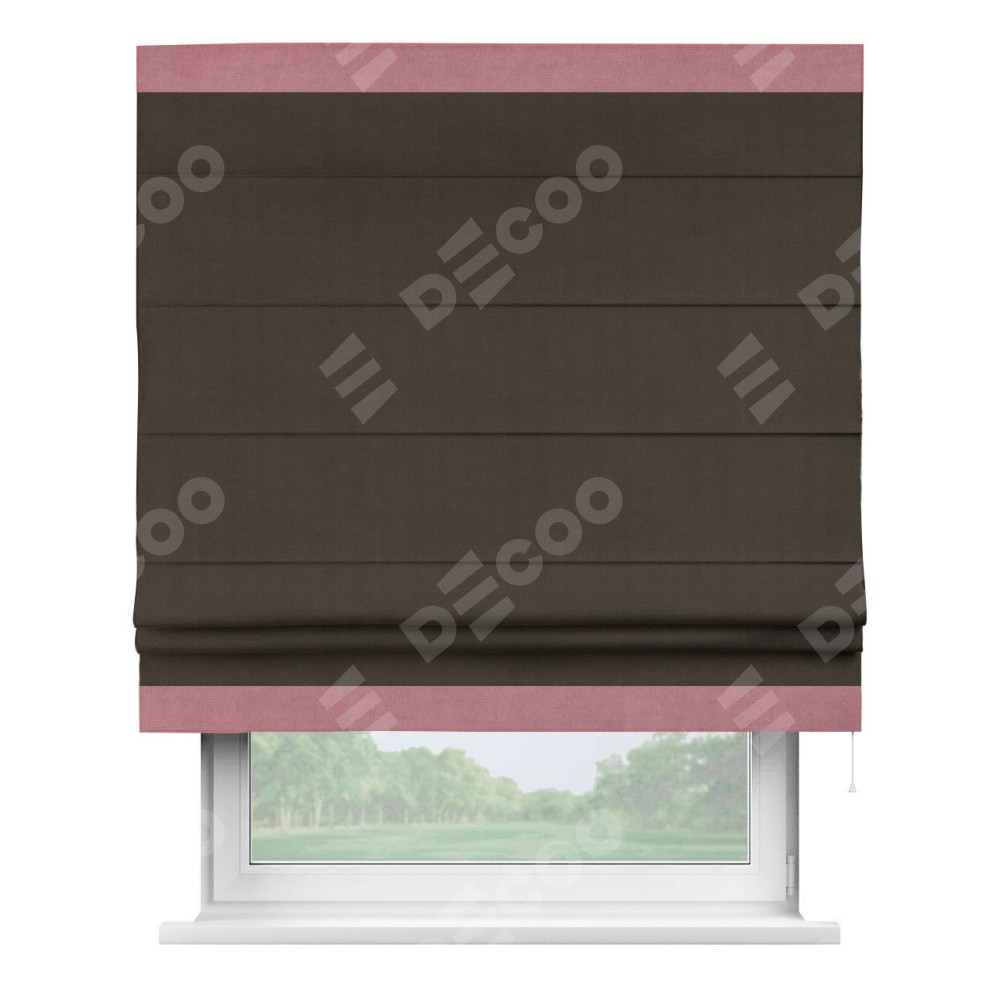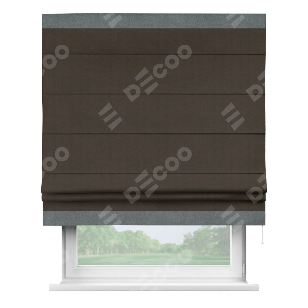 Римская штора «Кортин» с кантом Горизонт, для проема, ткань вельвет тёмно-коричневый