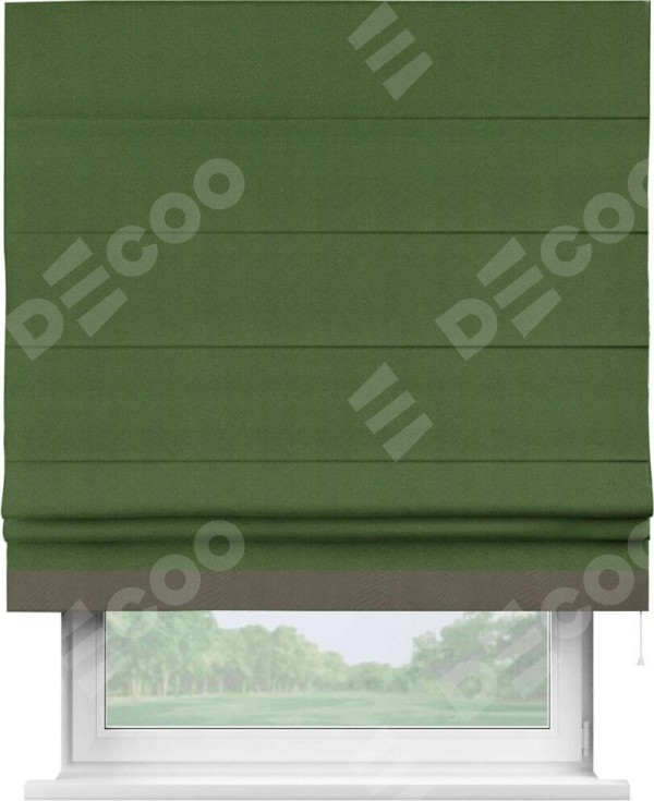 Римская штора «Кортин» с кантом Джестер, для проема, ткань блэкаут однотонный зелёный перламутр