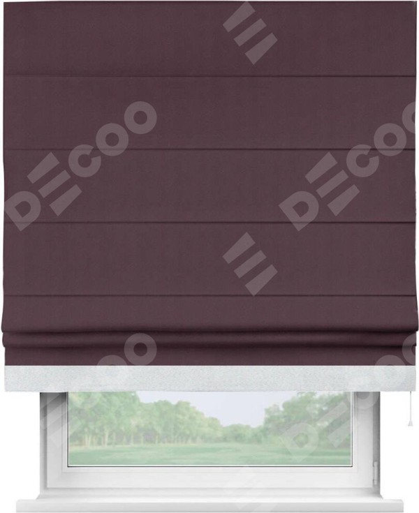 Римская штора производителя «Cortin», используется для проёма, пошита из ткани блэкаут однотонный сиреневый, артикул ткани 29333−2. Отделка шторы кантом «Джестер», ткань для канта используется из блэкаута однотонного разной расцветки на выбор. Имеет универсальный механизм и подходит для монтажа: на потолок, на стену и в нишу.