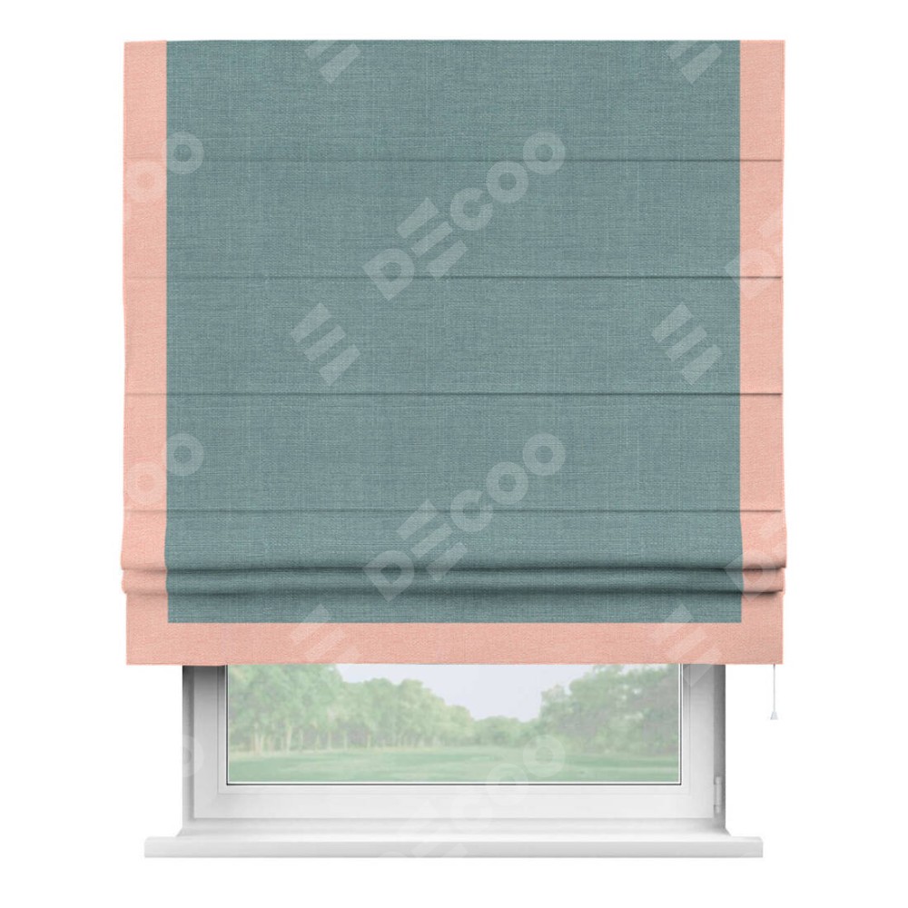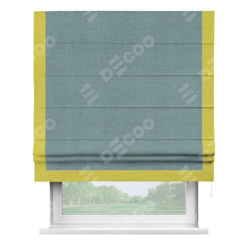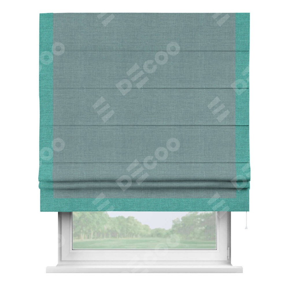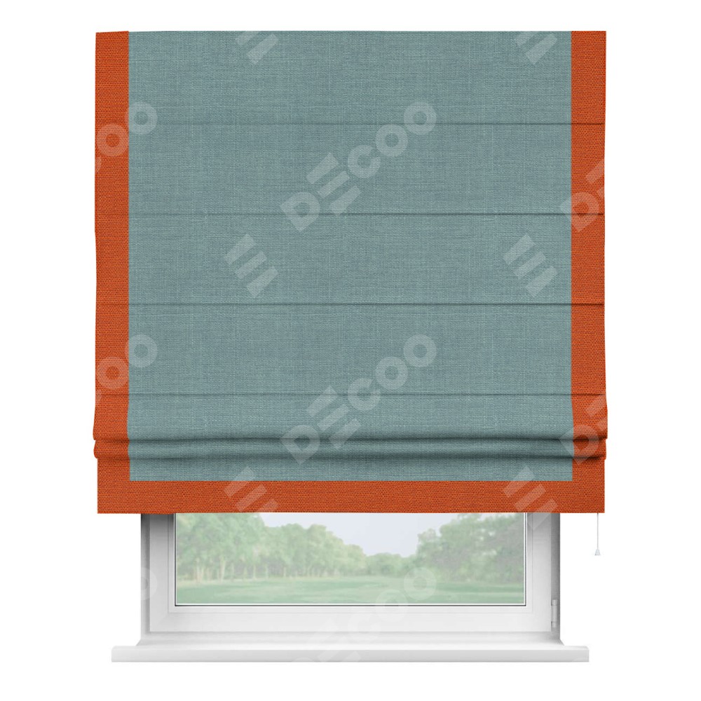 Римская штора «Кортин», отделка кантом Виктория, для проема, лён голубой