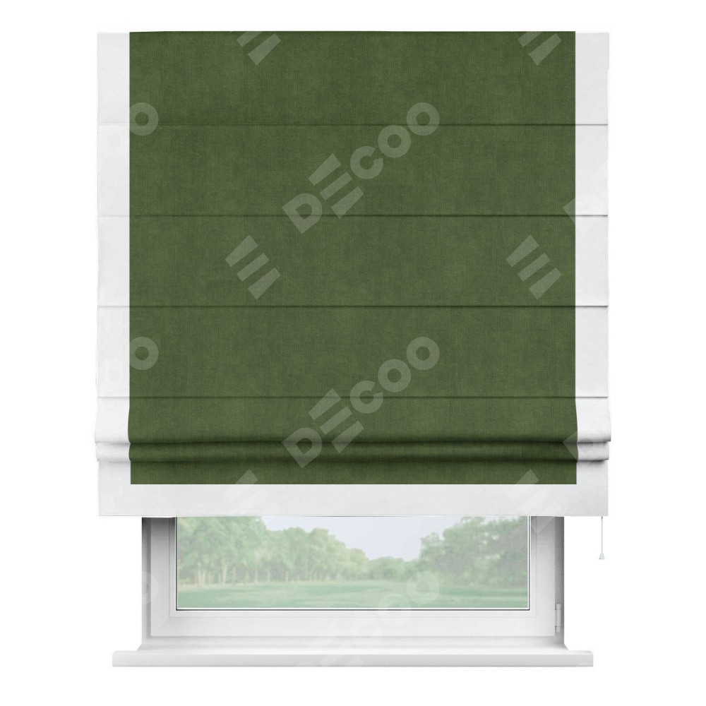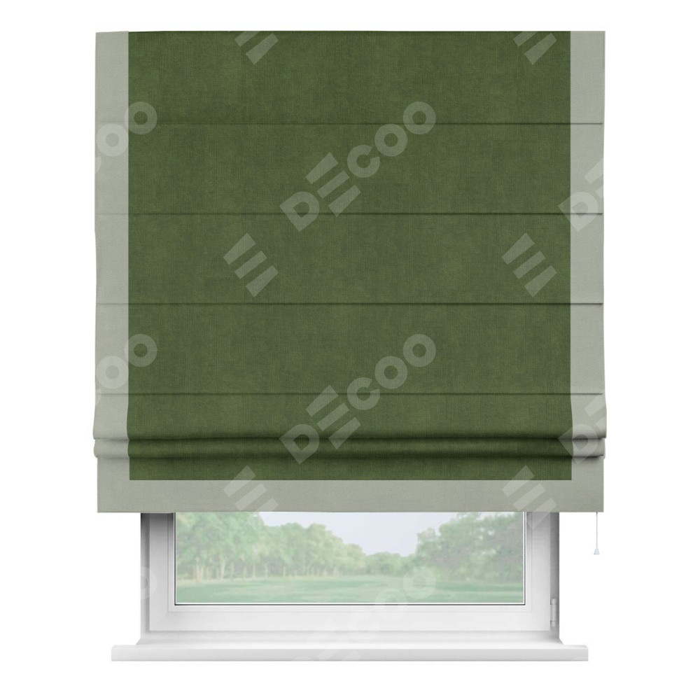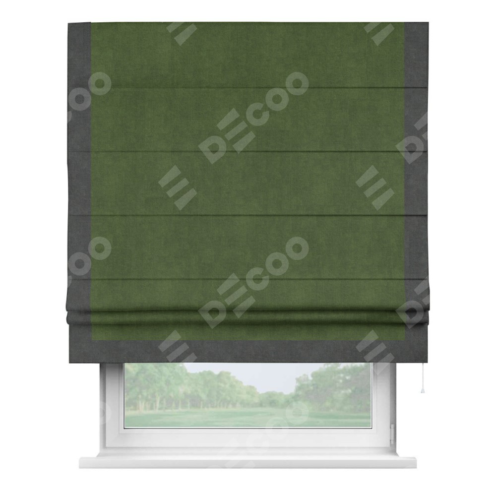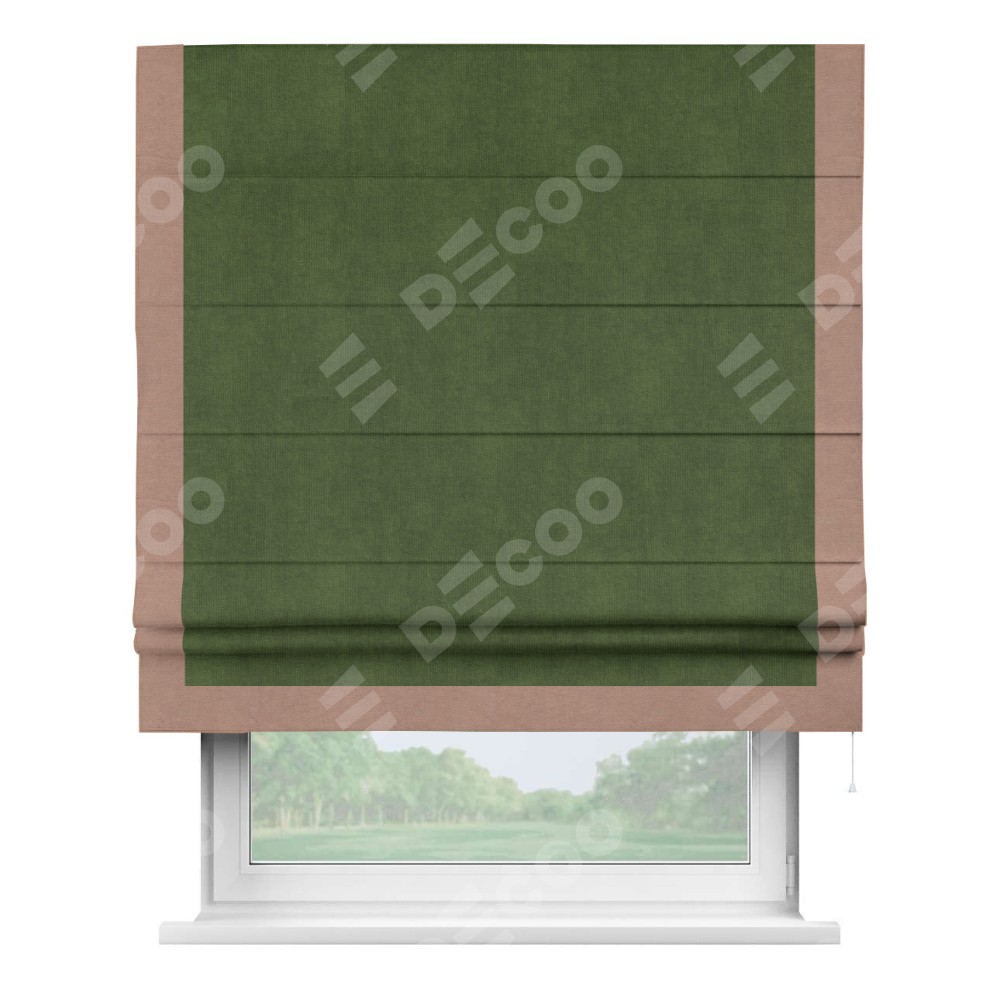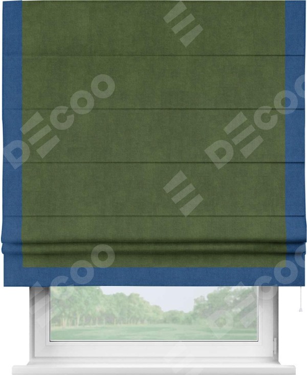 Римская штора «Кортин» с кантом Виктория, для проема, ткань вельвет тёмно-салатовый