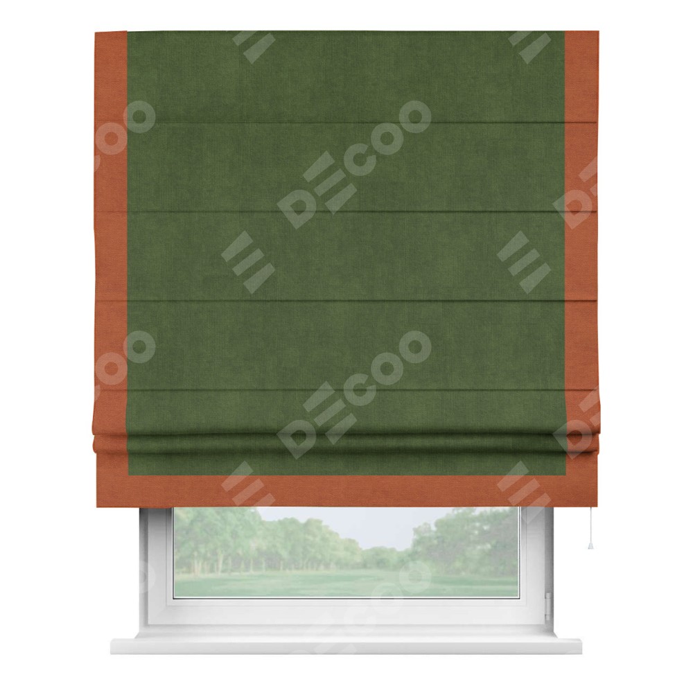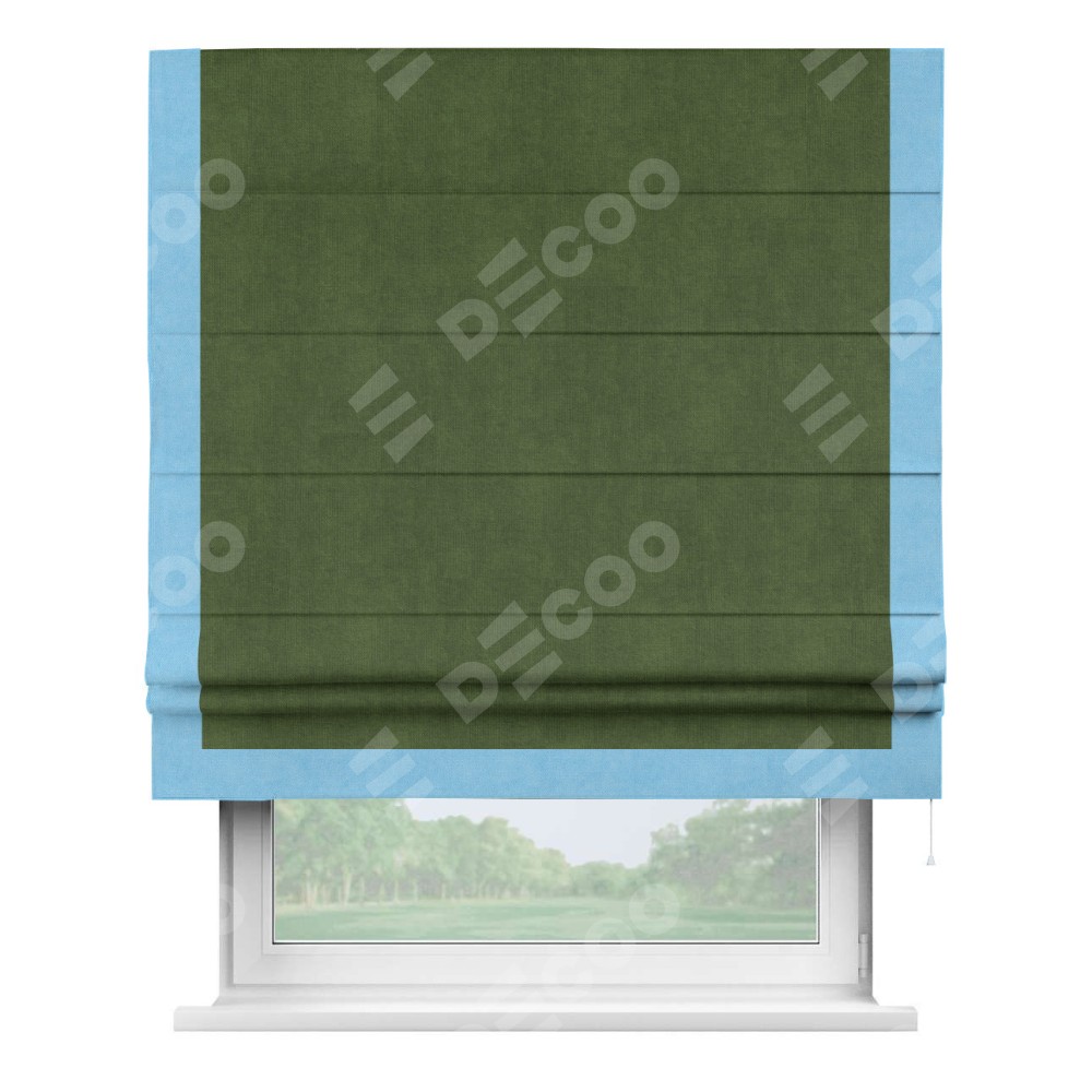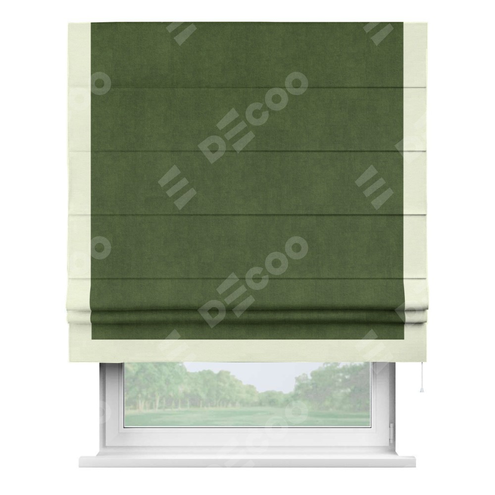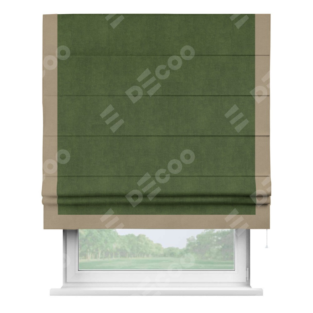 Римская штора «Кортин» с кантом Виктория, для проема, ткань вельвет тёмно-салатовый