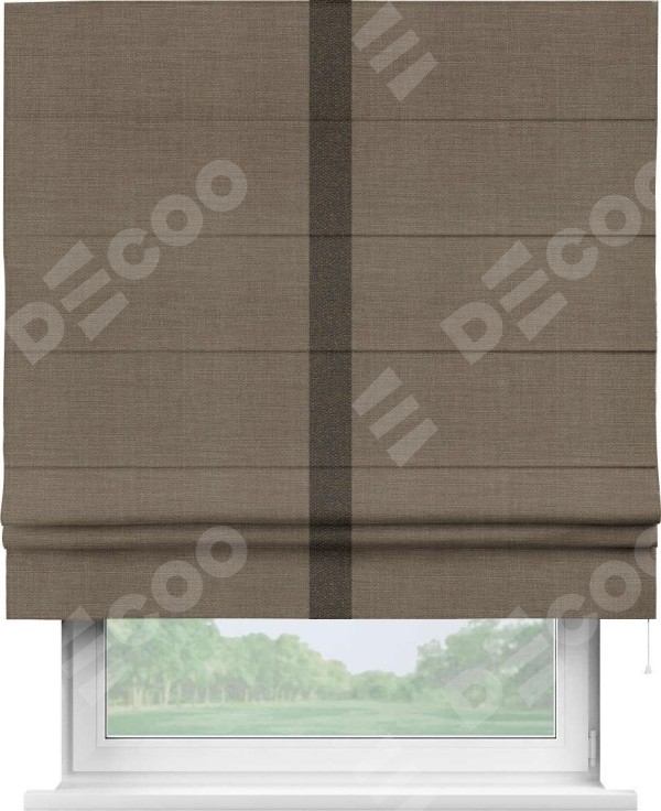 Римская штора «Кортин» с кантом Хайвэй, для проема, ткань лён мокко