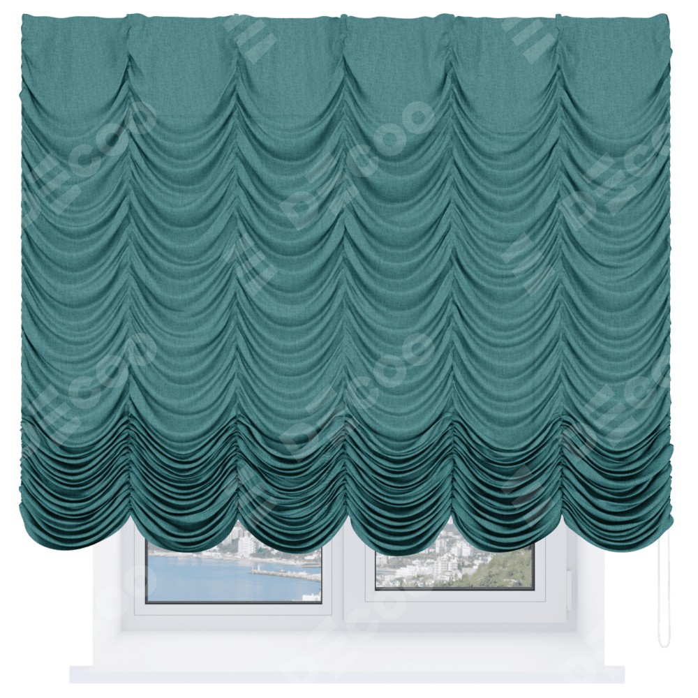 Французская штора «Кортин», лён кашемир бирюзовый