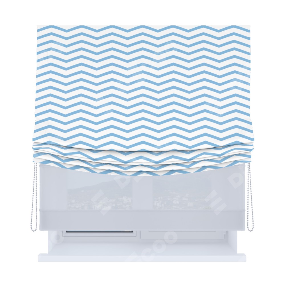 Римская штора день-ночь производителя «Cortin», используется для проёма, пошита из двух полотен, с лицевой блэкаут с нанесением сублимационной печати «Зигзаг мелкий», вторая ткань тюль (по стандарту комплектуется тюль белого цвета артикул V-01). Имеет универсальный механизм и подходит для монтажа: на потолок, на стену и в нишу. Удобное управление каждой шторой отдельно.