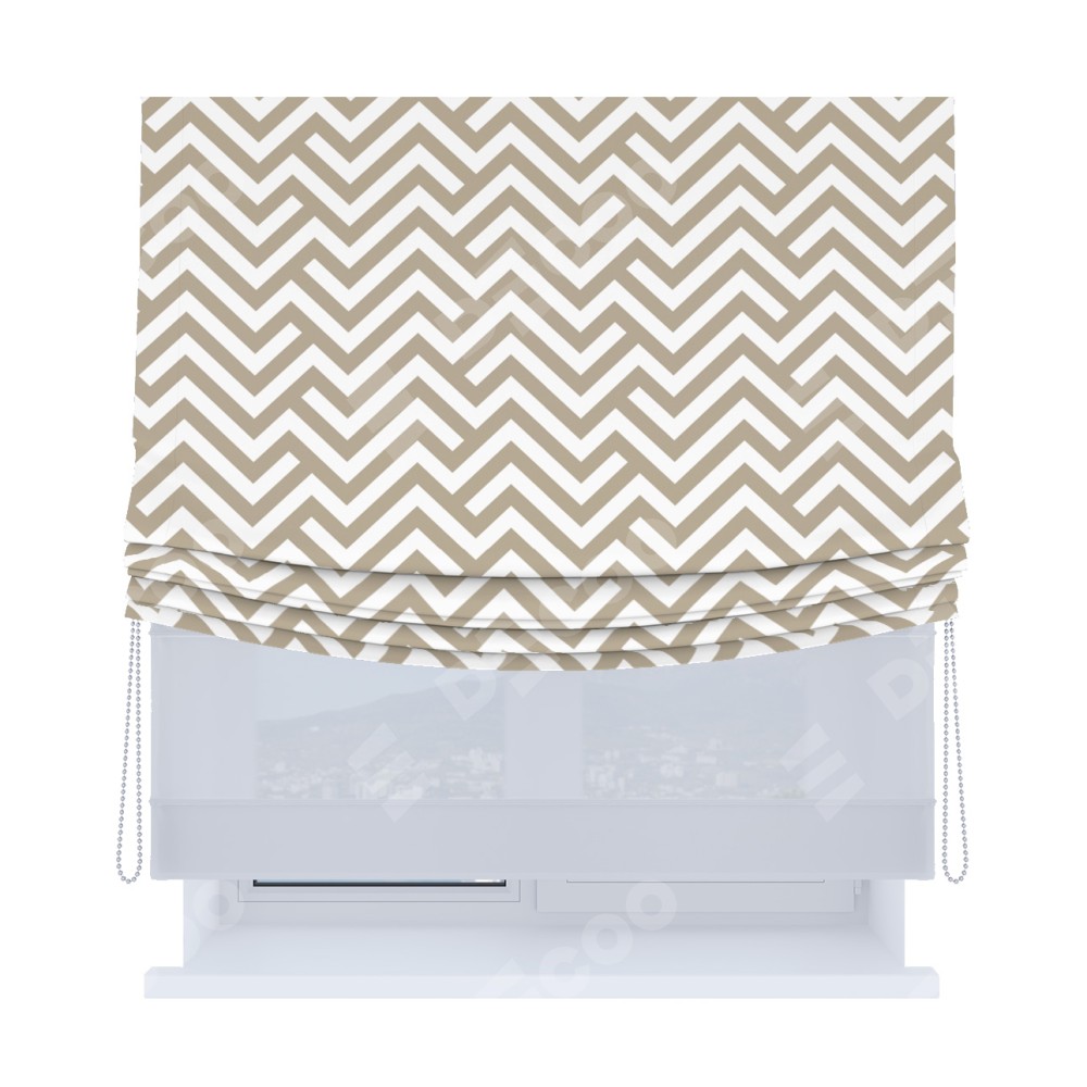 Основная ткань римской шторы не имеет горизонтальных вставок и нижнего отвеса. Это позволяет ткани произвольно драпироваться в свободные мягкие складки.