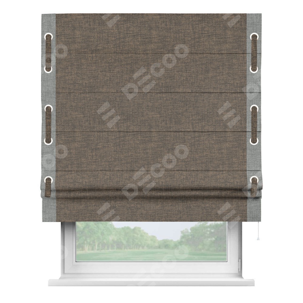 Римская штора «Кортин» с кантом Стрим Дуо (люверсы с пояском), для проема, ткань рогожка димаут, коричневый