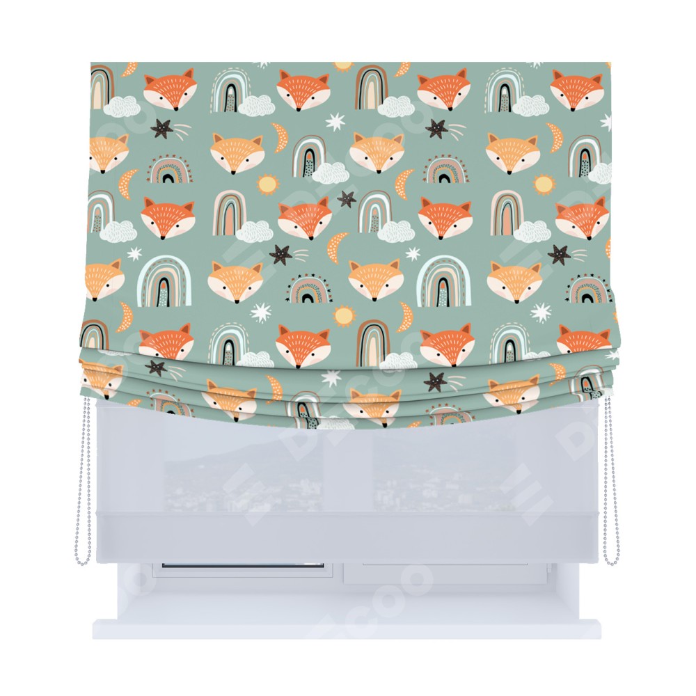 Римская штора «Кортин», день-ночь с мягкими складками, «Озорные лисички»