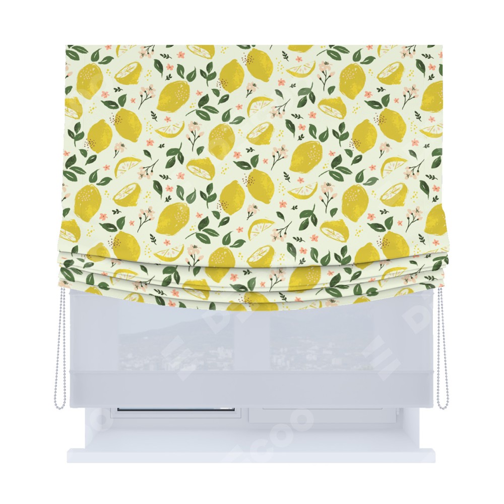 Римская штора «Кортин», день-ночь с мягкими складками, «Сочные лимоны»