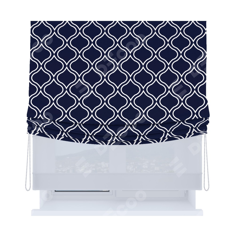 Римская штора «Кортин», день-ночь с мягкими складками, «Тайны востока синий»