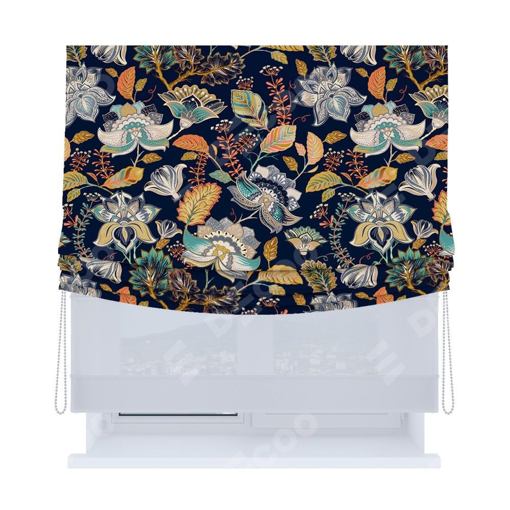 Римская штора «Кортин», день-ночь с мягкими складками, «Тёмный букет»