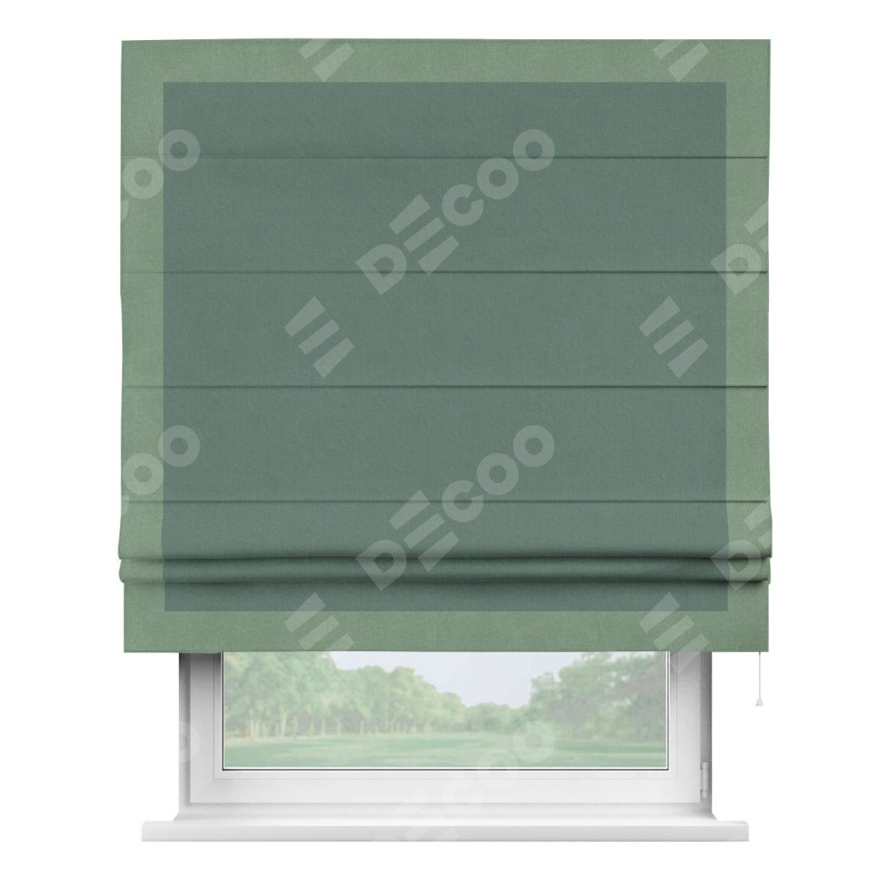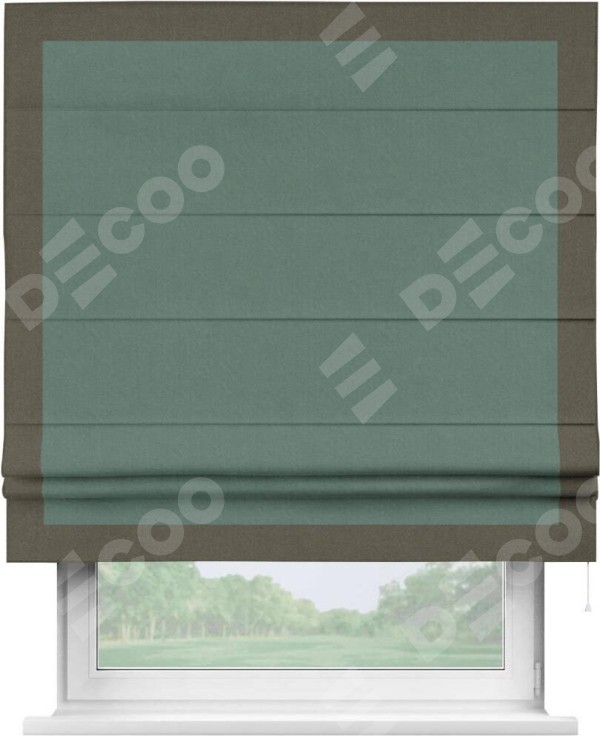 Римская штора «Кортин» с кантом Чесс, для проема, лён блэкаут бирюзовый