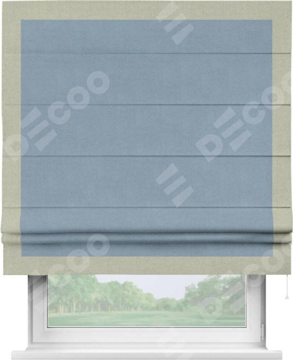 Римская штора «Кортин» с кантом Чесс, для проема, лён блэкаут голубой