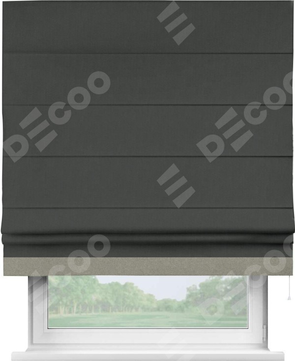 Римская штора «Кортин» с кантом Джестер, для проема, лён блэкаут графит