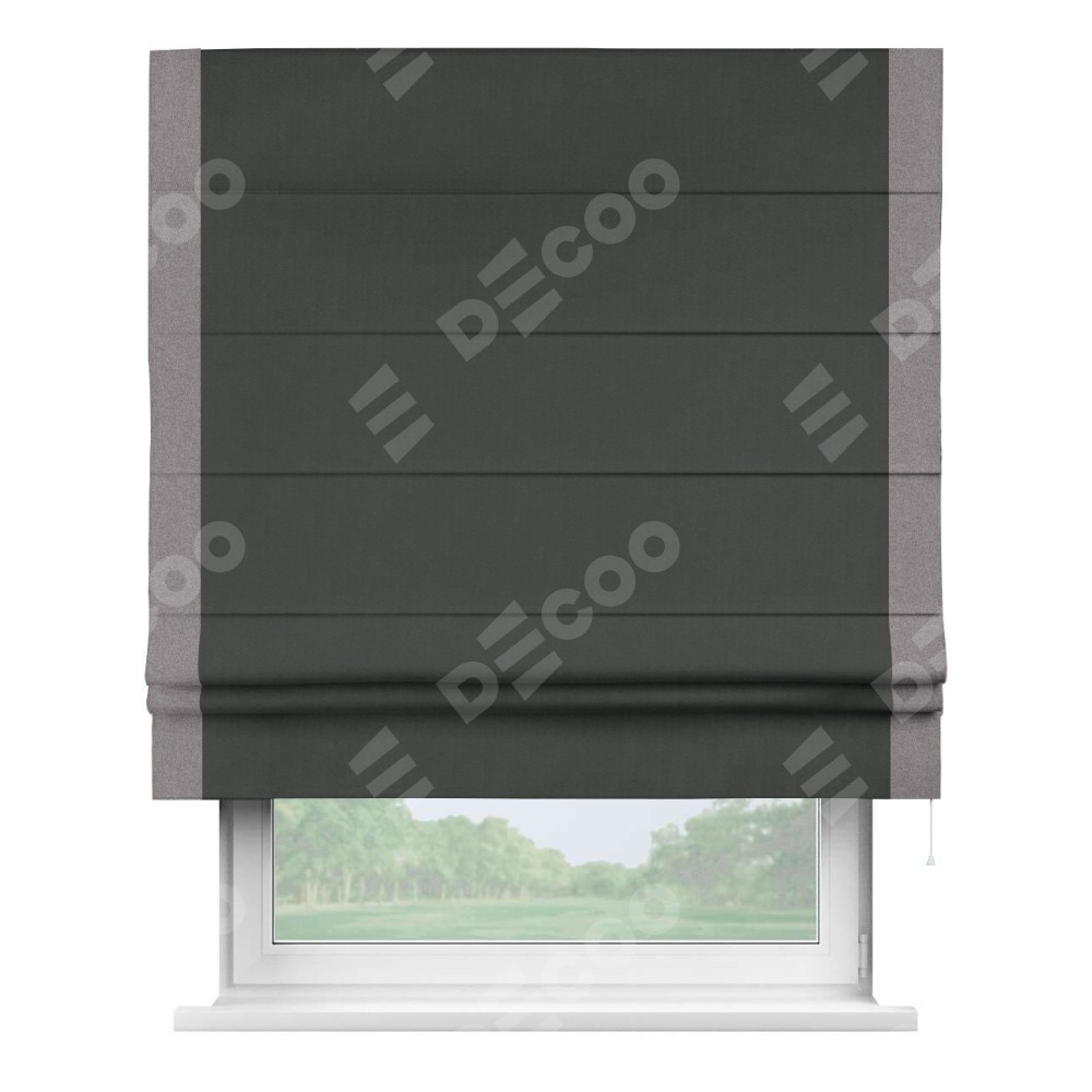 Римская штора «Кортин» с кантом Стрим Дуо, для проема, лён блэкаут графит