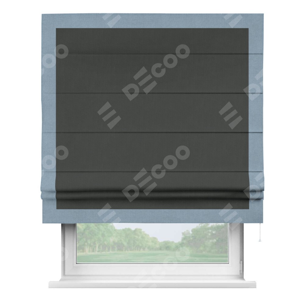 Римская штора производителя «Cortin», используется для проёма, пошита из ткани лён блэкаут графит, артикул 69448. Отделка шторы кантом «Чесс», ткань для канта используется из льна разной расцветки на выбор. Имеет универсальный механизм и подходит для монтажа: на потолок, на стену и в нишу.