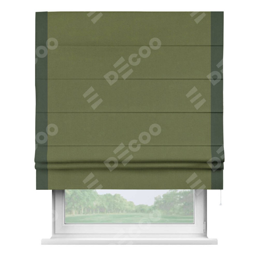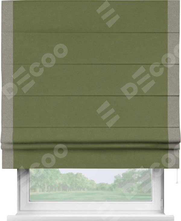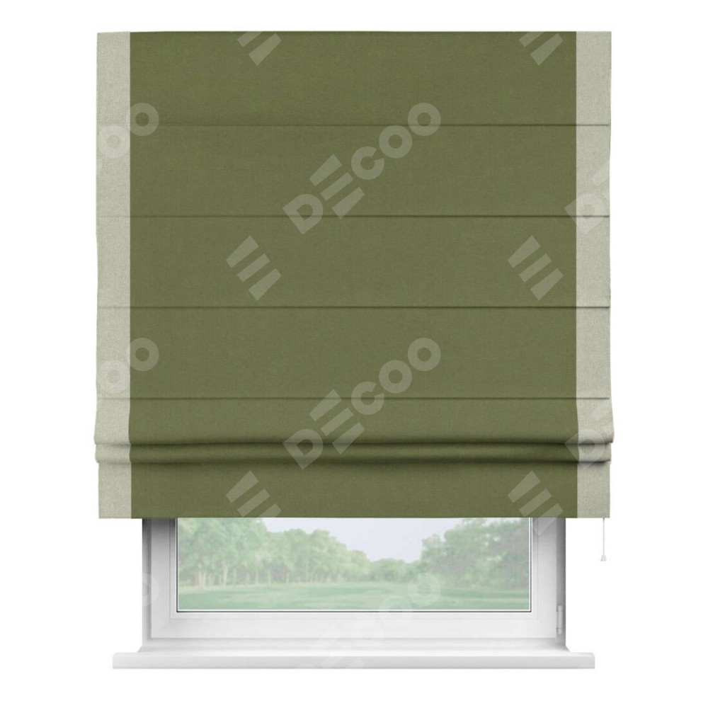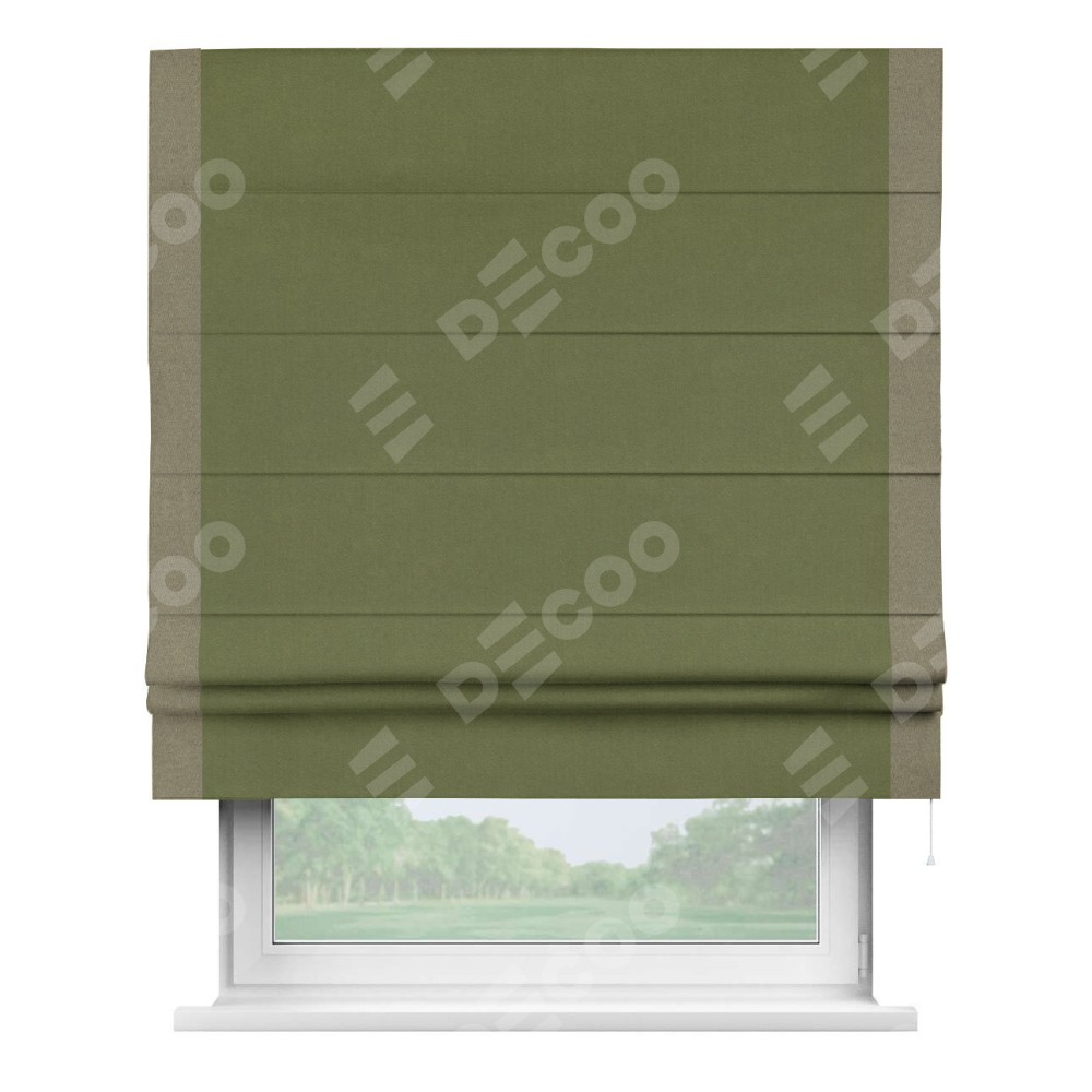 Римская штора «Кортин» с кантом Стрим Дуо, для проема, лён блэкаут оливковый