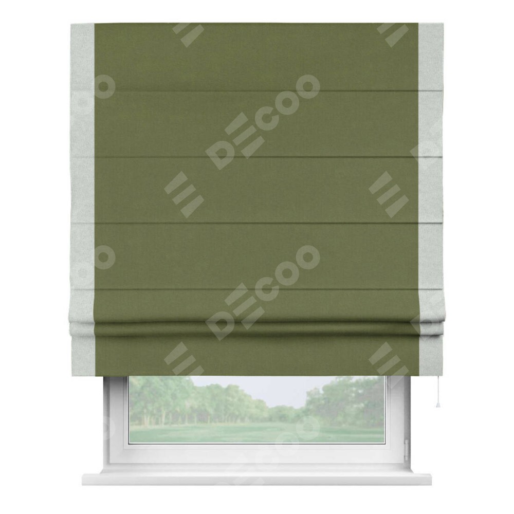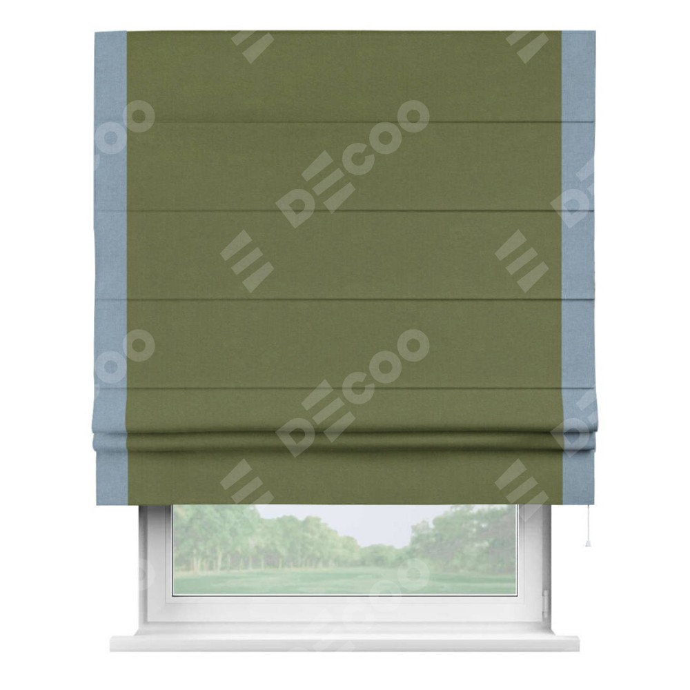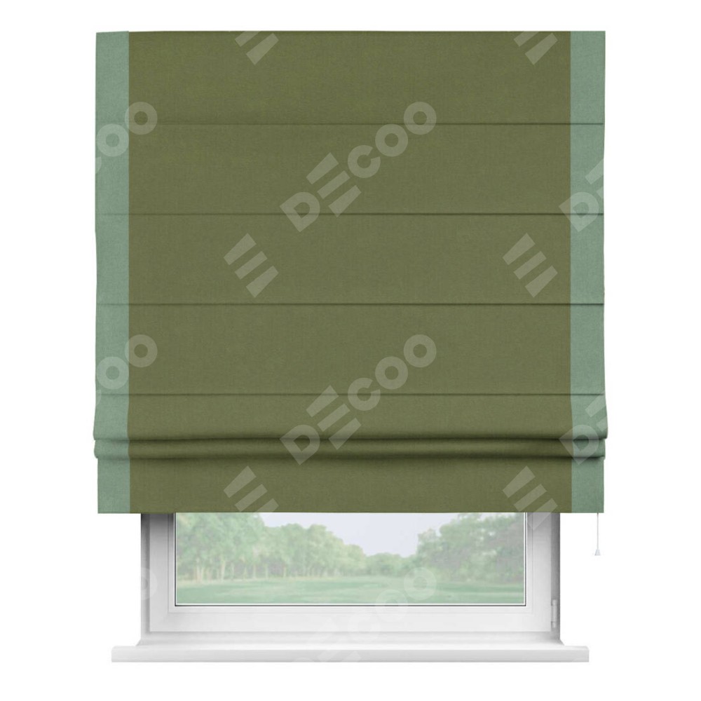 Римская штора «Кортин» с кантом Стрим Дуо, для проема, лён блэкаут оливковый