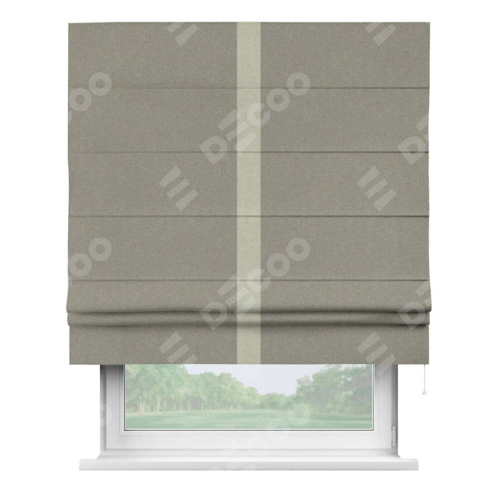 Римская штора производителя «Cortin», используется для проёма, пошита из ткани лён блэкаут светло-бежевый, артикул 69445. Отделка шторы кантом «Хайвэй», ткань для канта используется из льна разной расцветки на выбор. Имеет универсальный механизм и подходит для монтажа: на потолок, на стену и в нишу.