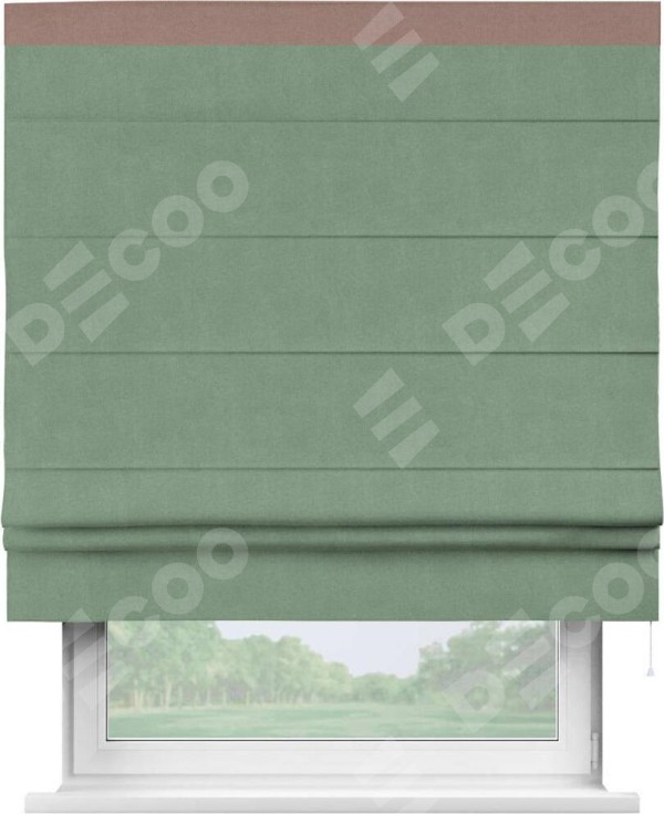 Римская штора «Кортин» с кантом Кинг, для проема, лён блэкаут светло-бирюзовый