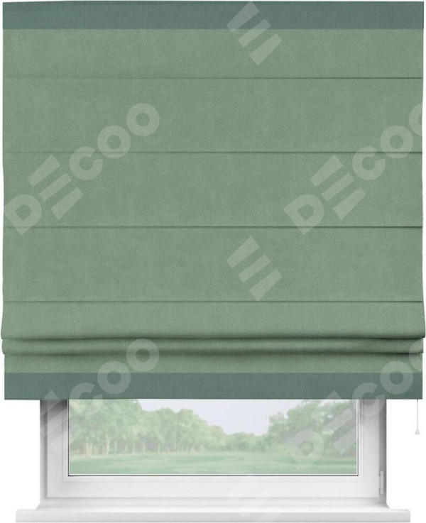 Римская штора «Кортин» с кантом Горизонт, для проема, лён блэкаут светло-бирюзовый