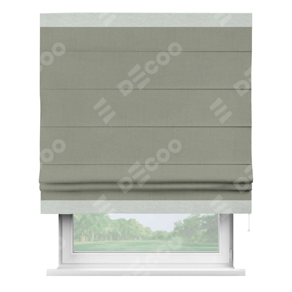 Римская штора «Кортин» с кантом Горизонт, для проема, лён блэкаут светло-серый