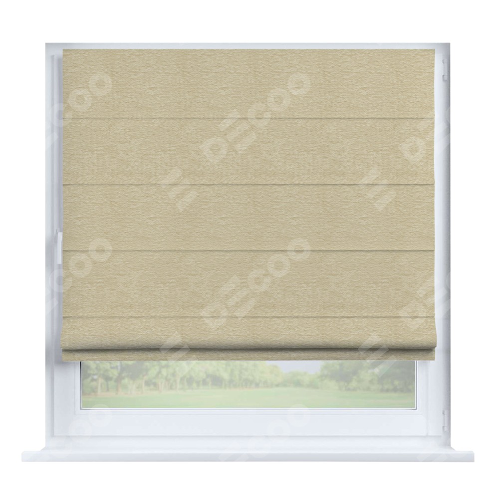 Римская штора производителя «Cortin», устанавливается на створку окна, пошита из ткани софт однотонный светло-бежевый, артикул 54426. Штора шьётся по индивидуальным размерам, для данного типа римской шторы возможная ширина от 35 до 150 см., высота до 250 см.