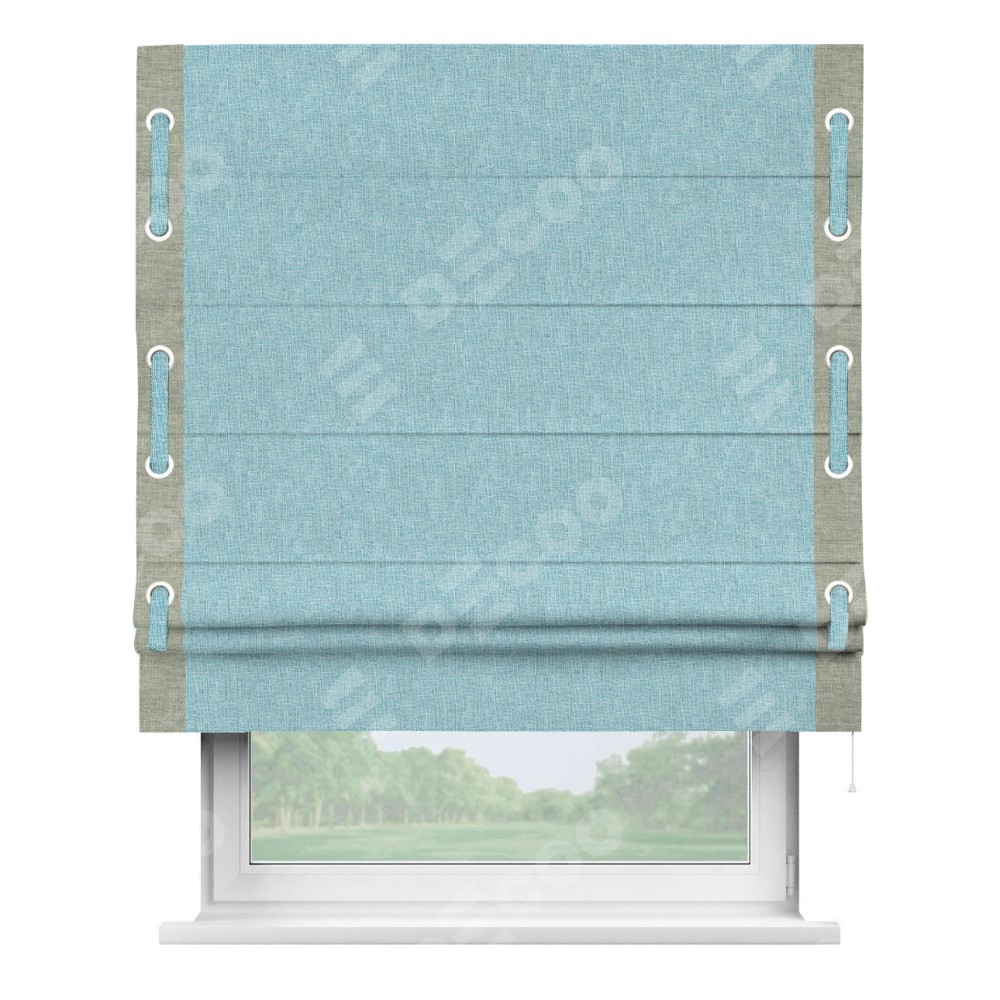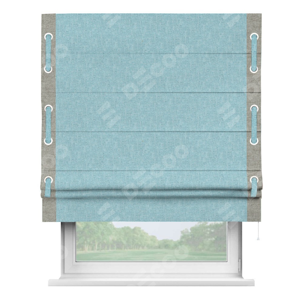 Римская штора «Кортин» с кантом Стрим Дуо (люверсы с пояском), для проема, ткань лён кашемир голубой