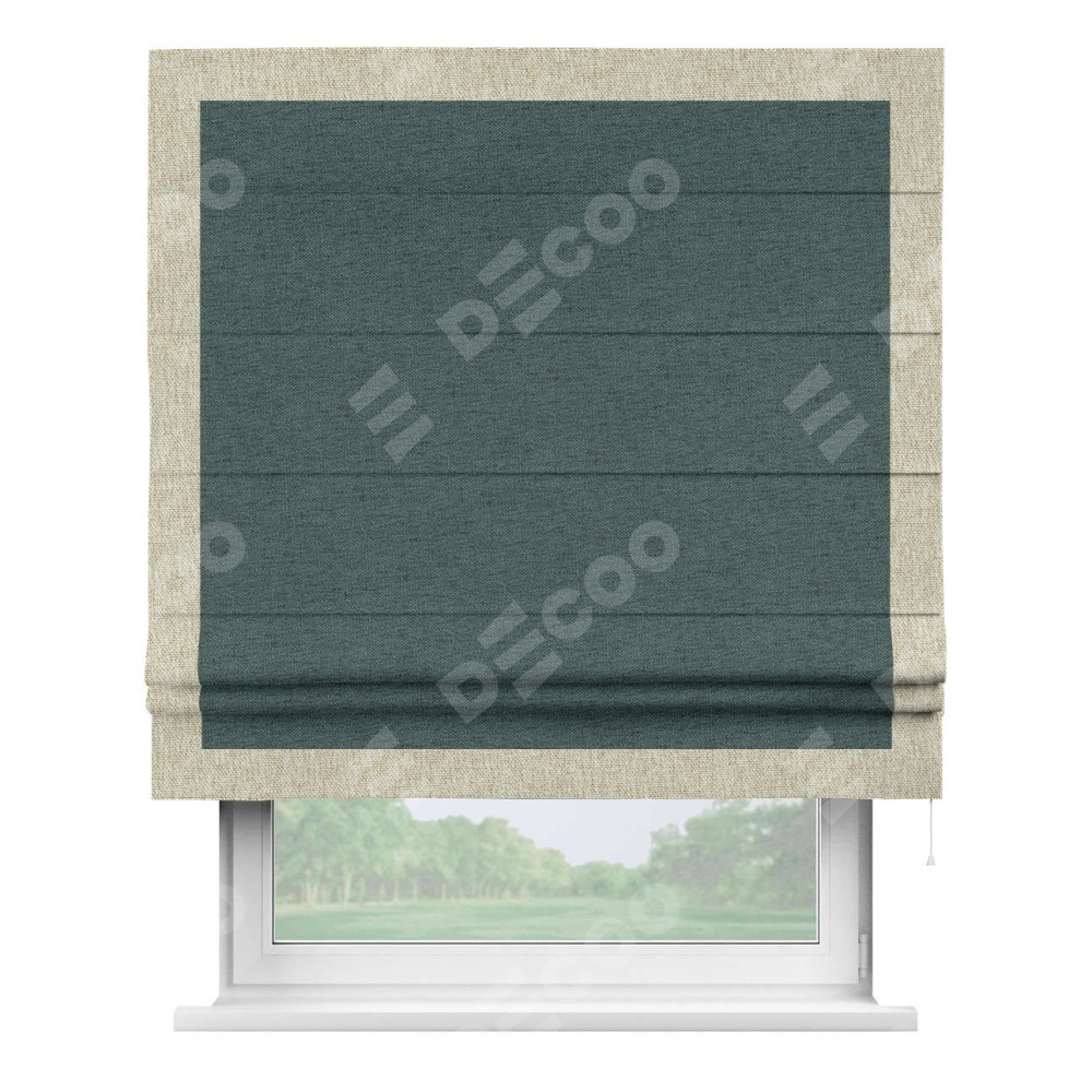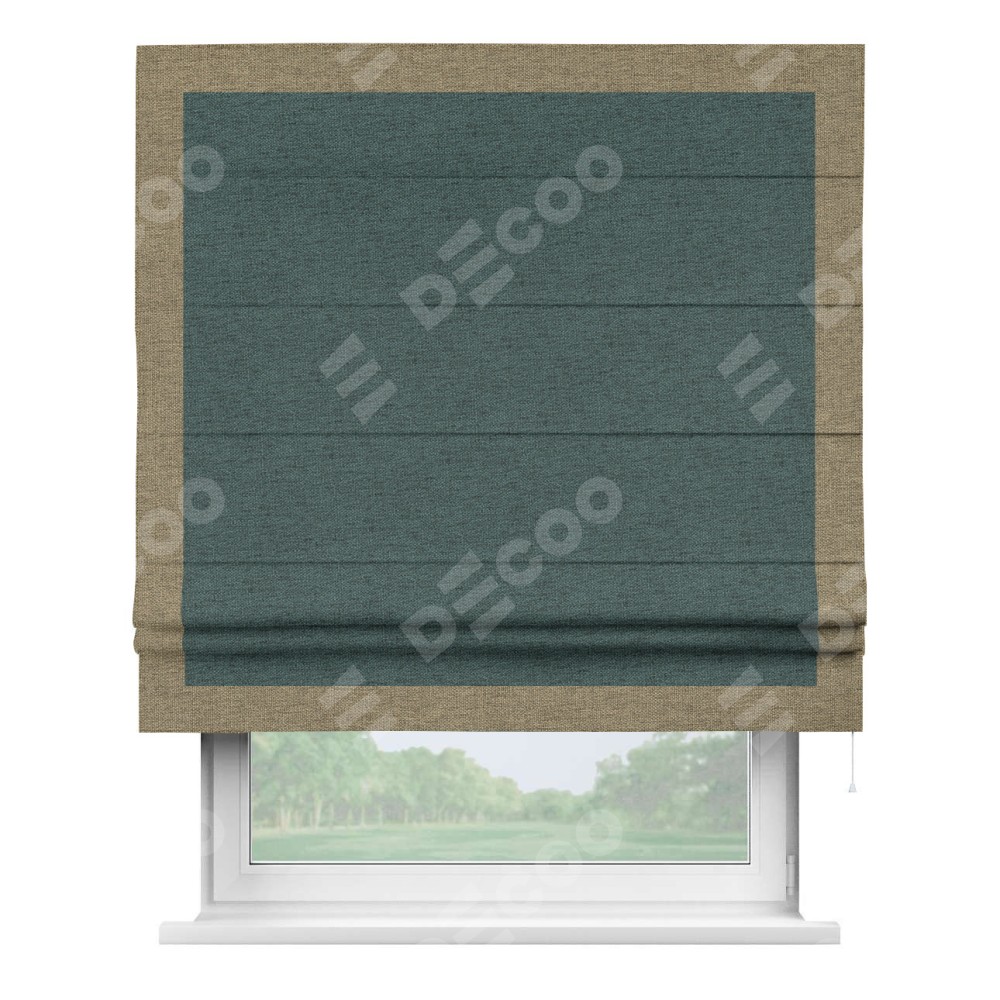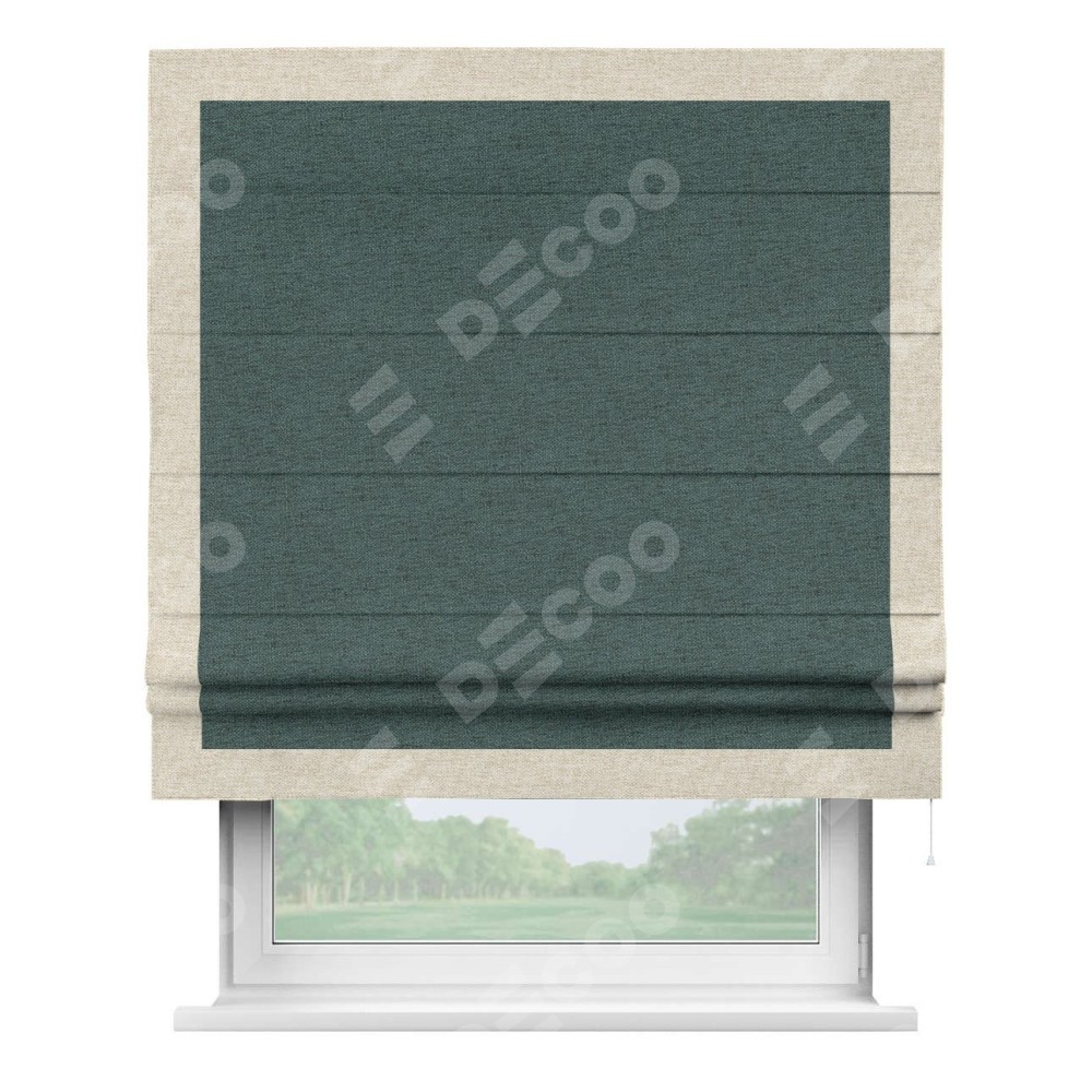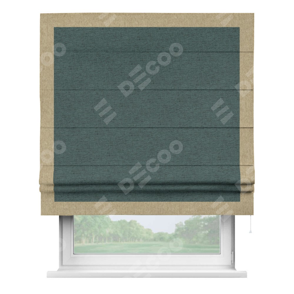 Римская штора «Кортин» с кантом Чесс, для проема, ткань стиф димаут сине-зелёный