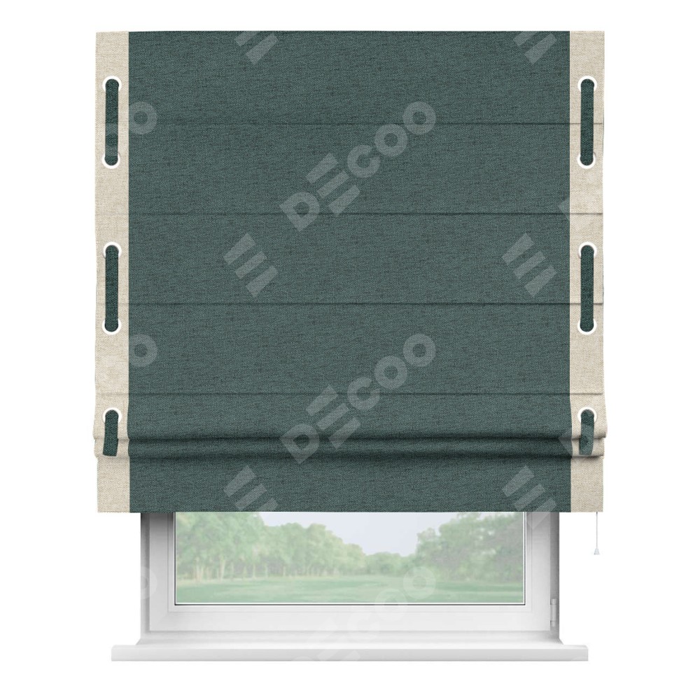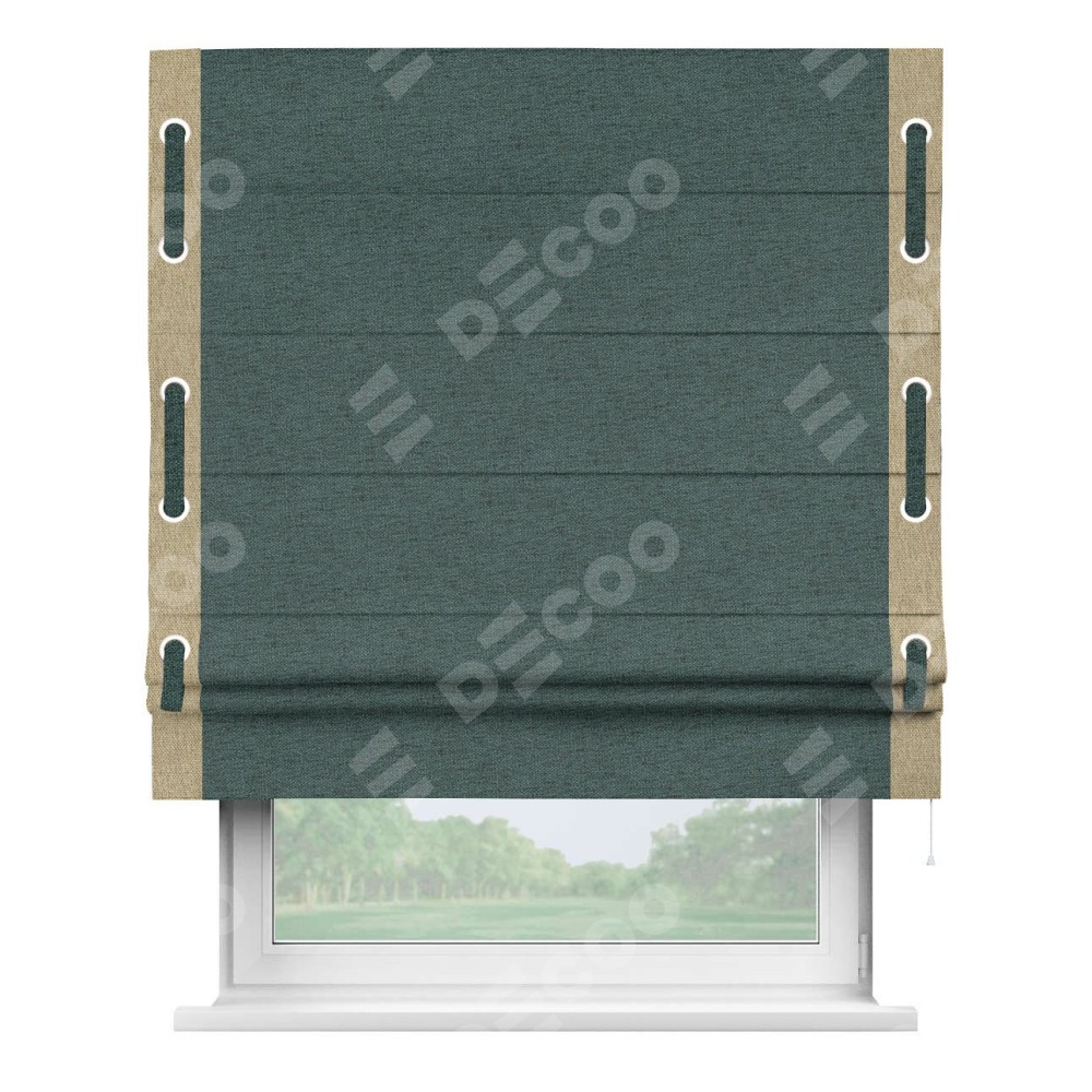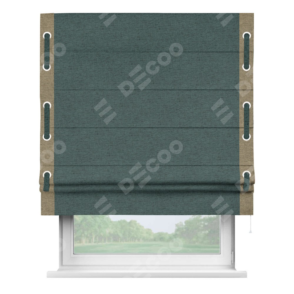 Римская штора «Кортин» с кантом Стрим Дуо (люверсы с пояском), для проема, ткань стиф димаут сине-зелёный