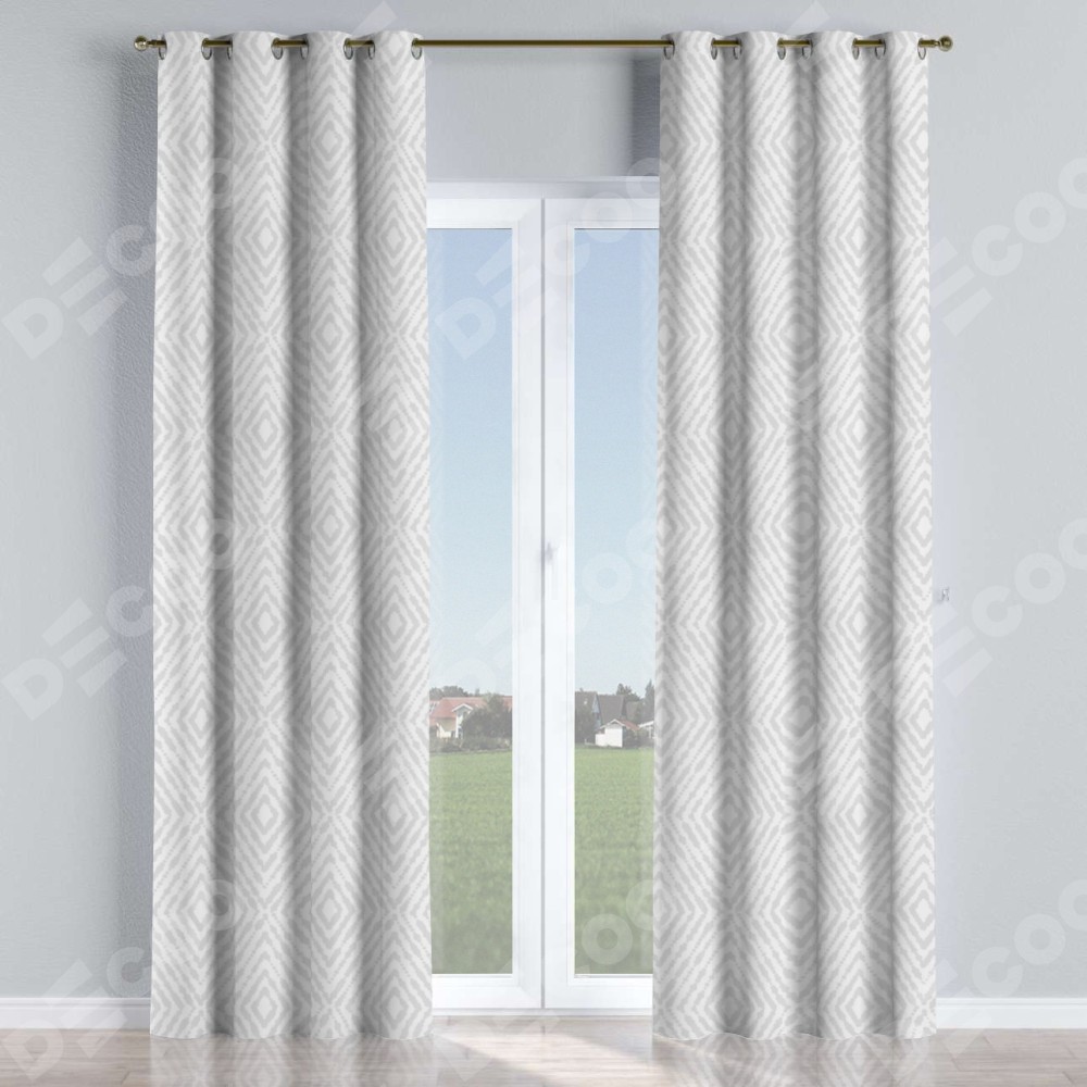 Длина карниза равна ширине окна плюс 30 — 50 см. При расчете длины штанги наконечники не учитываются. Для определения высоты штор измерьте расстояние от верхнего края карниза до пола и отнимите 1 см. Прибавьте 4 см  (гребешок над люверсом) Это габаритный размер вашего изделия.