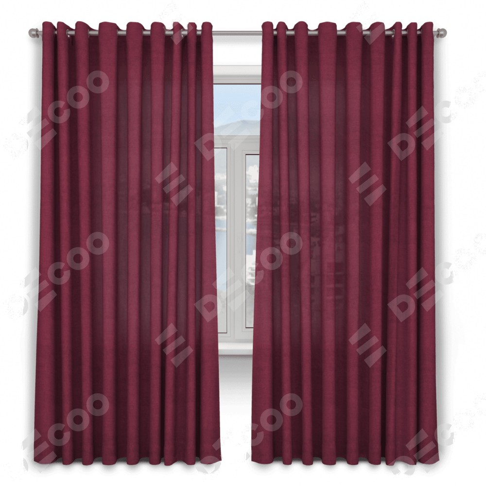 Комплект прямых штор, от производителя «Cortin», пошиты из ткани вельвет бордовый, артикул ткани 85553. Данная модель пошита на люверсах, комплектуется на выбор круглым карнизом и подходит для монтажа на стену. Прямые шторы на люверсах шьются по стандарту с коэффициентом 1/2 (на 100 см. ширины проёма 200 см. ширины ткани), отличительным преимуществом данной модели является простой способ монтажа. Достаточно повесить ее на трубу и штора готова!